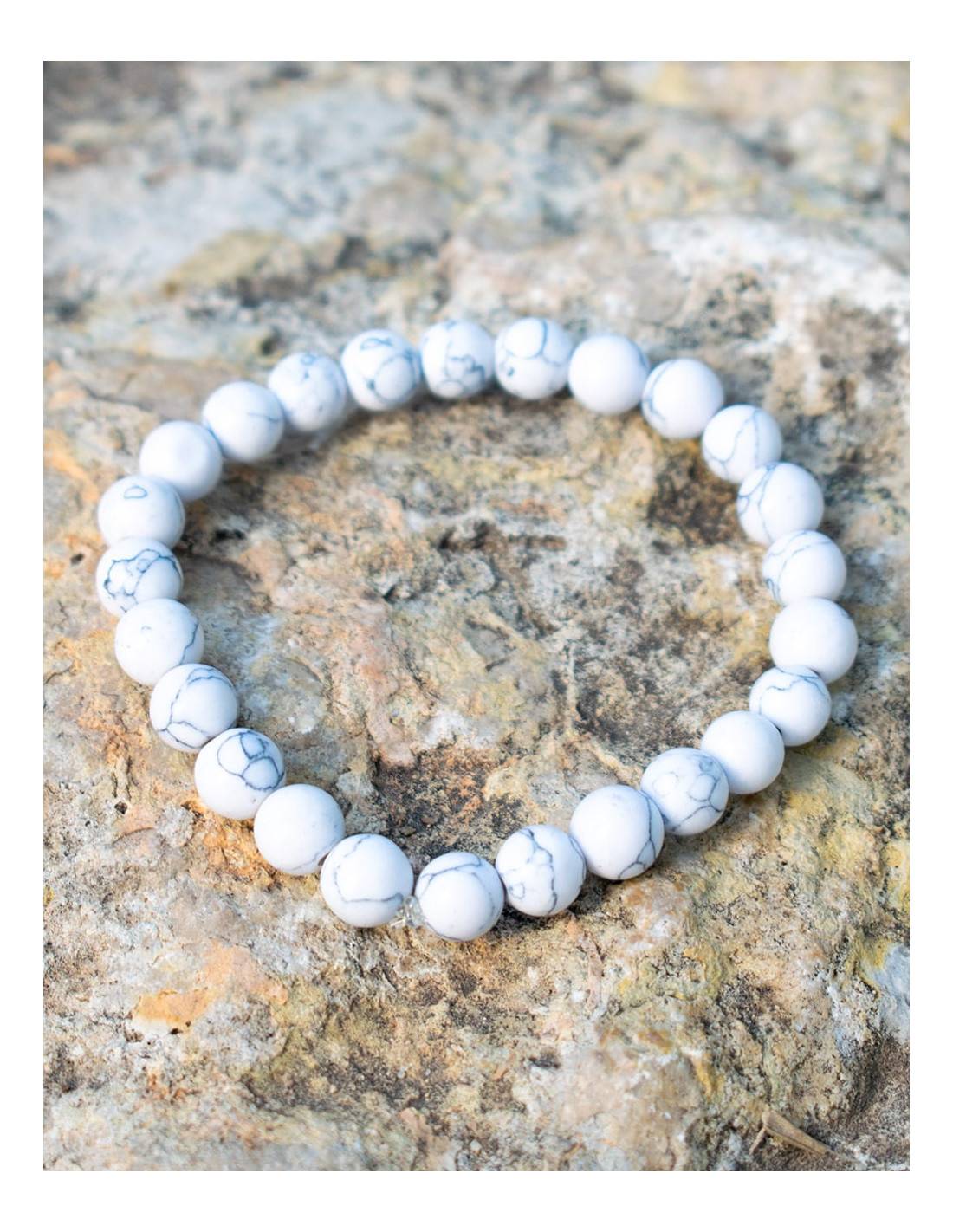 Handmade bracelet with 8 mm balls of the Howlite mineral stone, which promotes patience and good communication.
