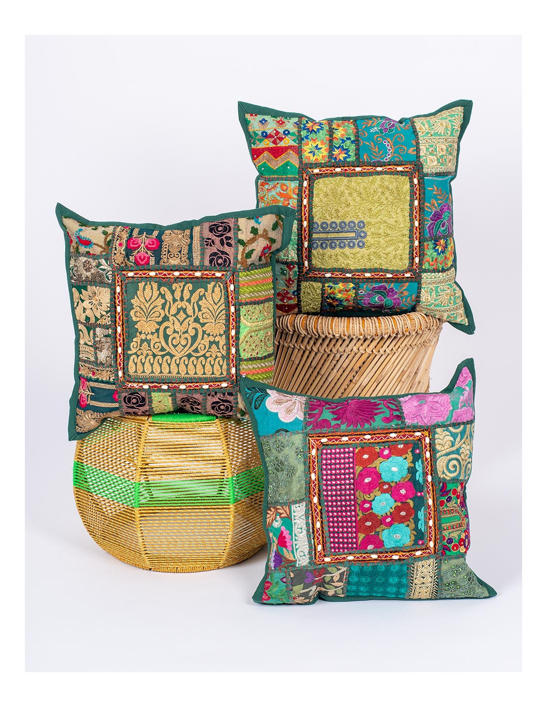 Each cover measures 40 x 40 cm and is unique , as the arrangement of colors and fabrics varies in each unit, always maintaining a carefully considered color harmony. They are delivered randomly , making them ideal for shops that embrace ethnic decor with identity and authenticity .