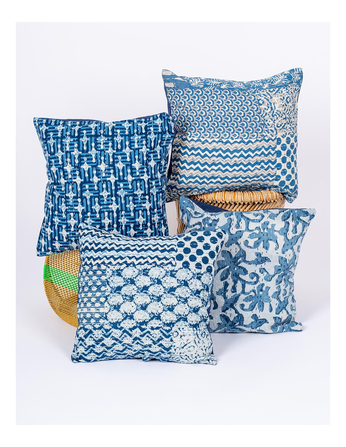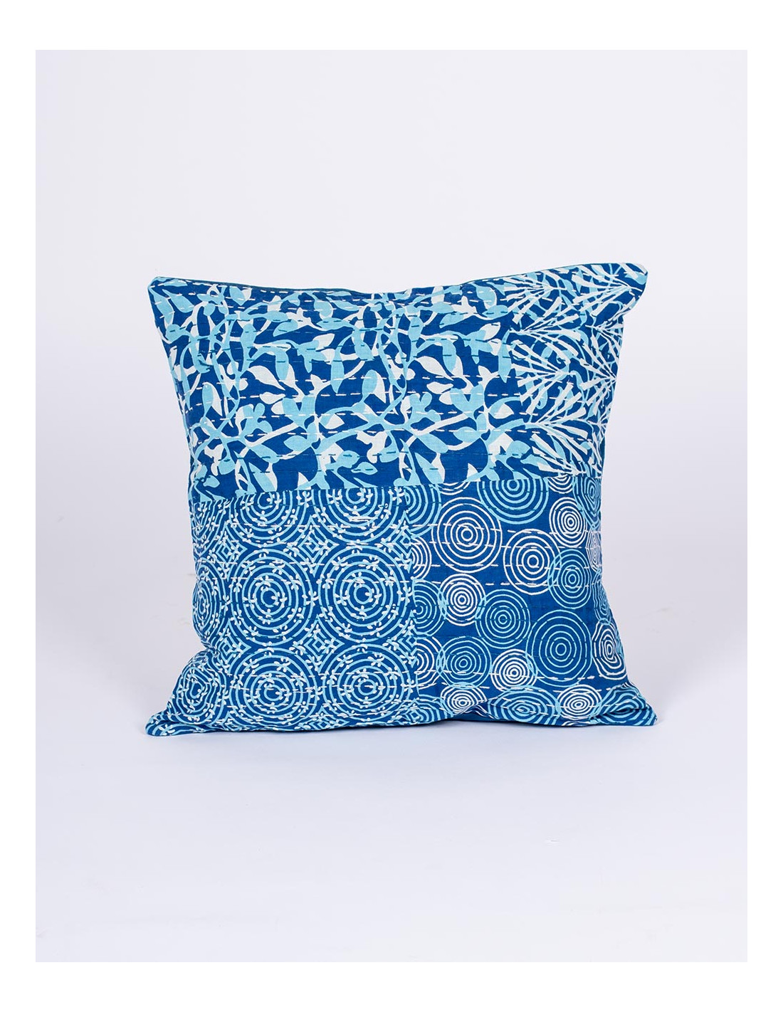 Kimago cushion cover in cotton with blue, light blue and white print inspired by Indian craftsmanship.