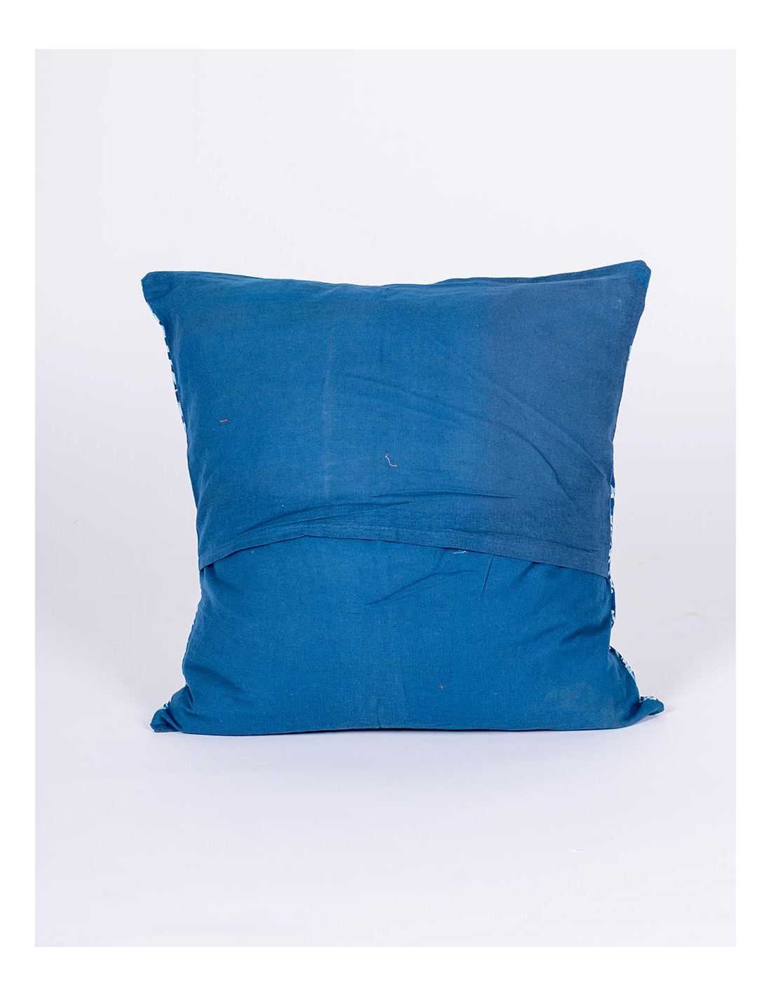 The Kimago 40x40 cushion cover in shades of blue, light blue and white is a textile piece that reflects the richness of Indian craftsmanship and the charm of ethnic decoration.