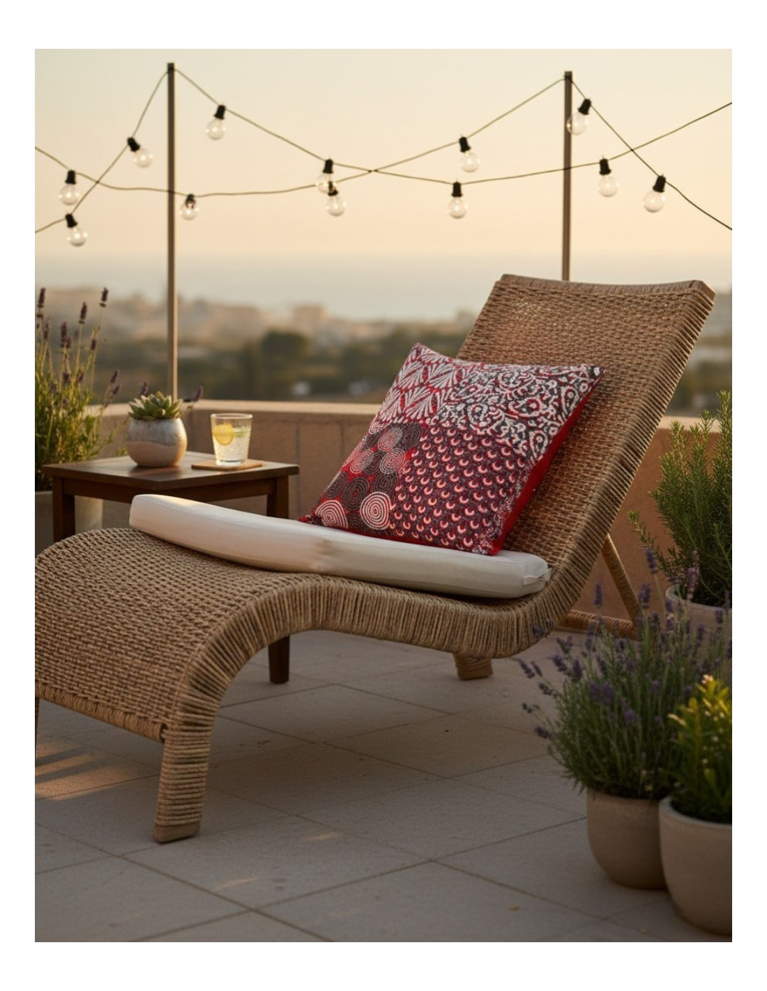 The pattern remains consistent across all units, although the placement of the design may vary slightly , reinforcing its authentic, handcrafted character. The back is completely smooth , in an elegant burgundy tone, and includes an opening for easy insertion of the filling.