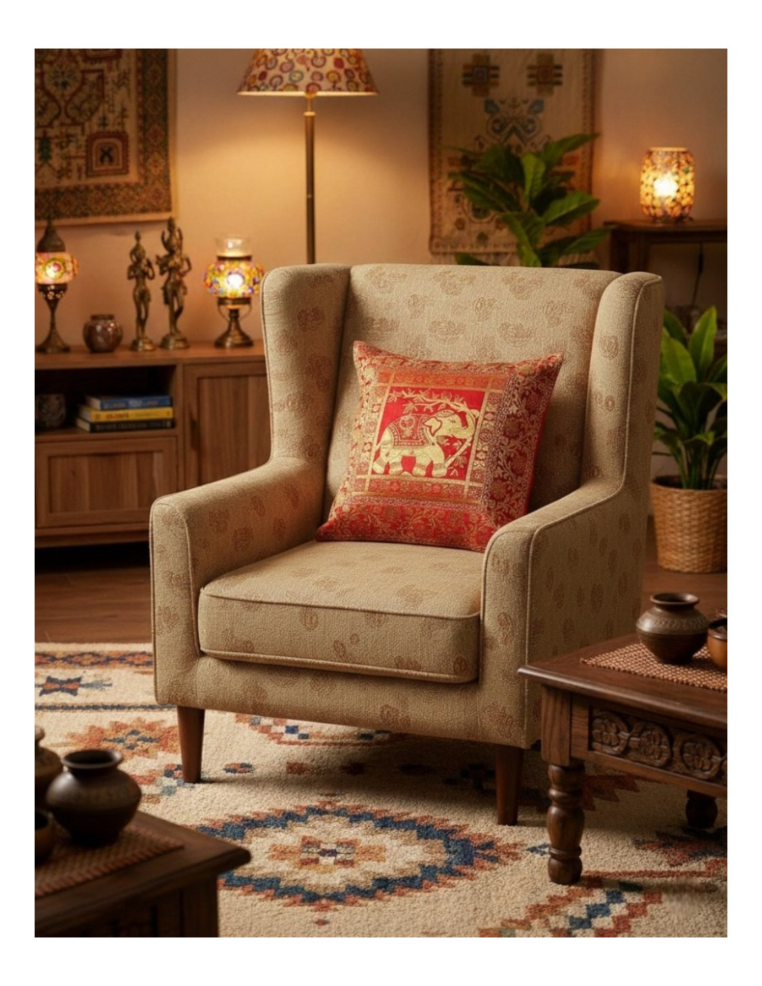 The Kimago cushion cover in red is a striking and symbolic decorative piece, perfect for ethnic and boho-style spaces. Made from high-quality fabric , it features a prominent elephant design on the front, an iconic symbol of Indian culture associated with wisdom and good fortune.