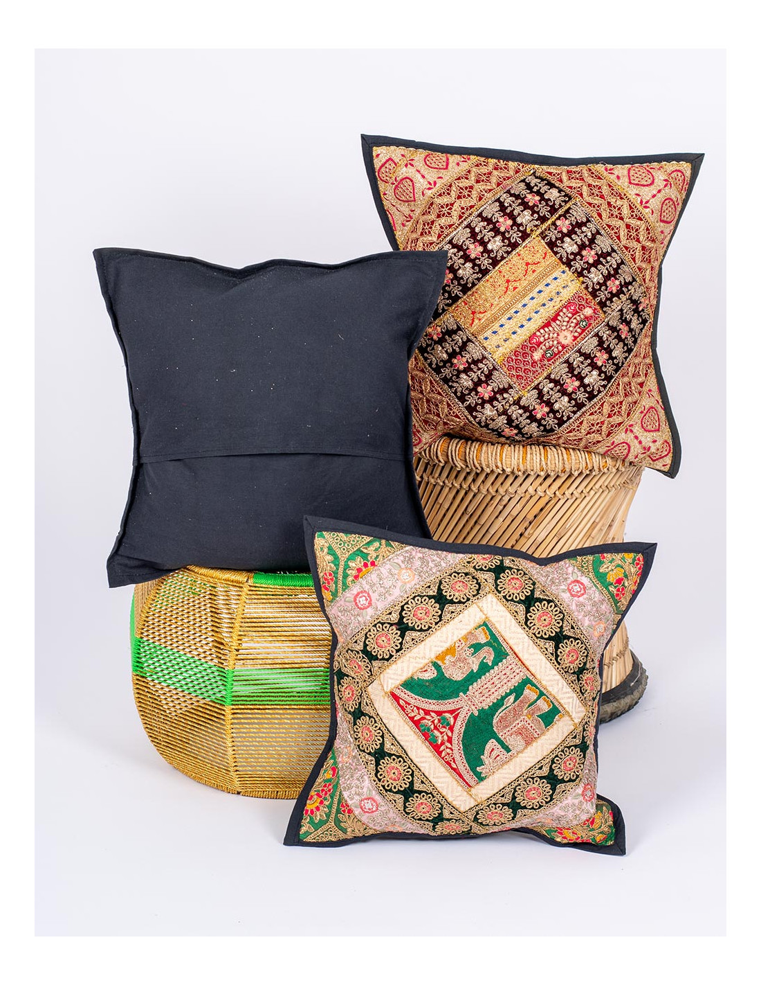It features a back opening for inserting the filling (not included). This product is geared towards home decor and ethnic fashion stores looking to increase their average order value (AOV) with items that have a strong cultural identity.