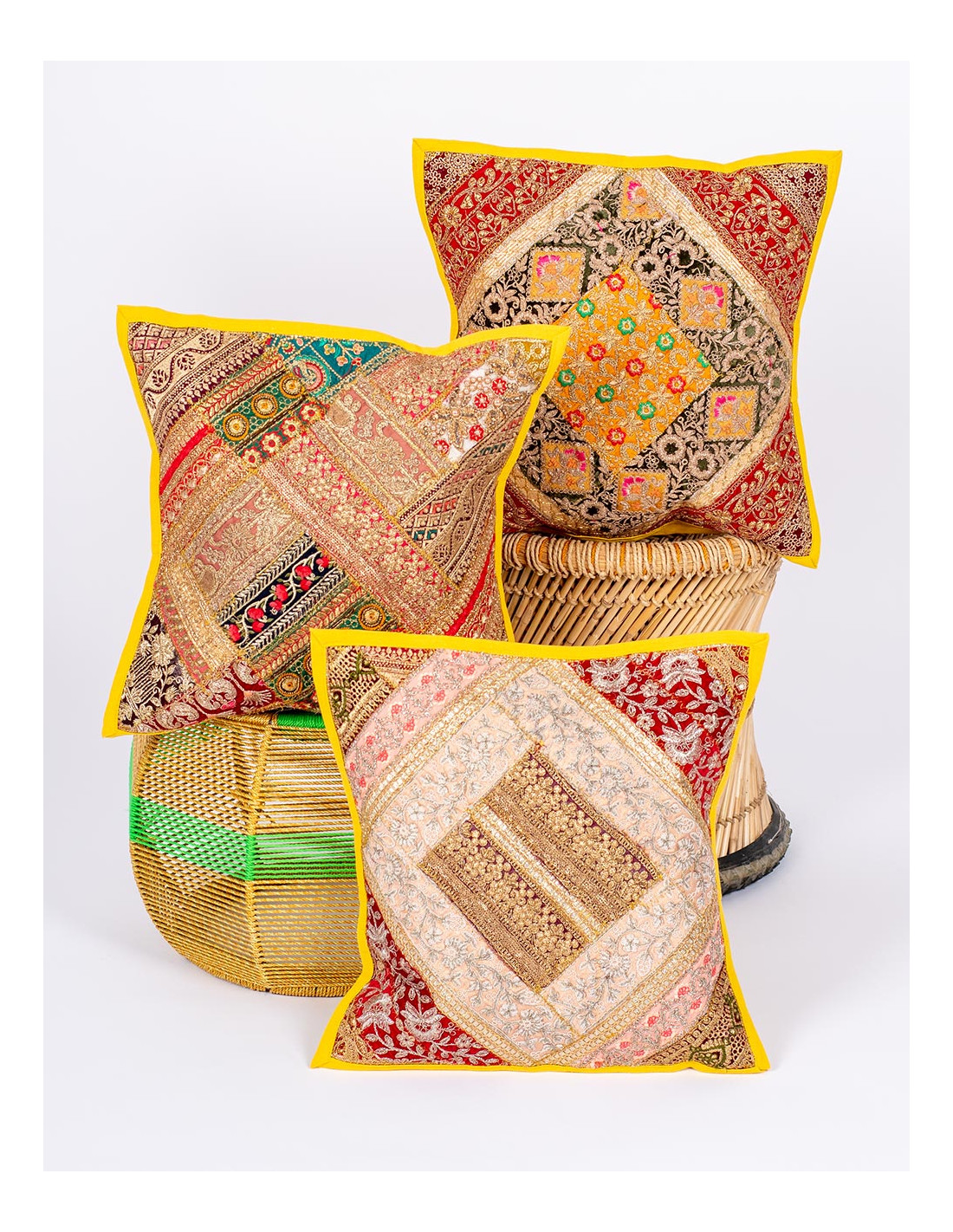 40x40 cushion cover in yellow cotton with bright Indian embroidery.