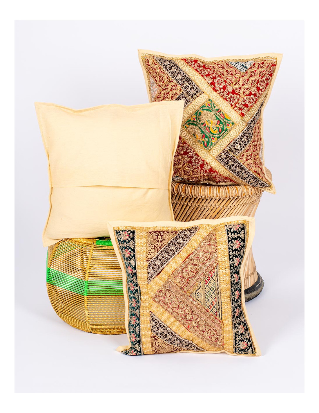 Beige 40x40 cushion cover with bright Indian embroidery.