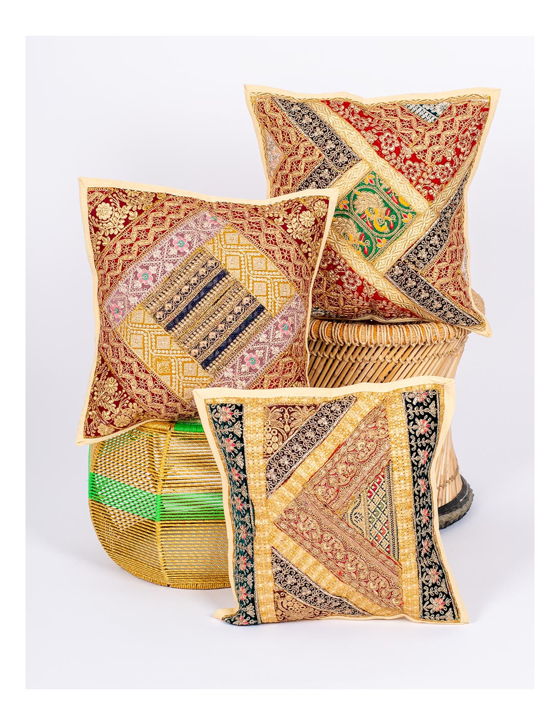 At Kimago we work with artisan workshops in India to offer products that optimize differentiation and sales volume in stores. This 40x40 cm beige cushion cover features handcrafted embroidery with shimmering details, striking a balance between neutral design and visual appeal that improves conversion rates in both retail and e-commerce.