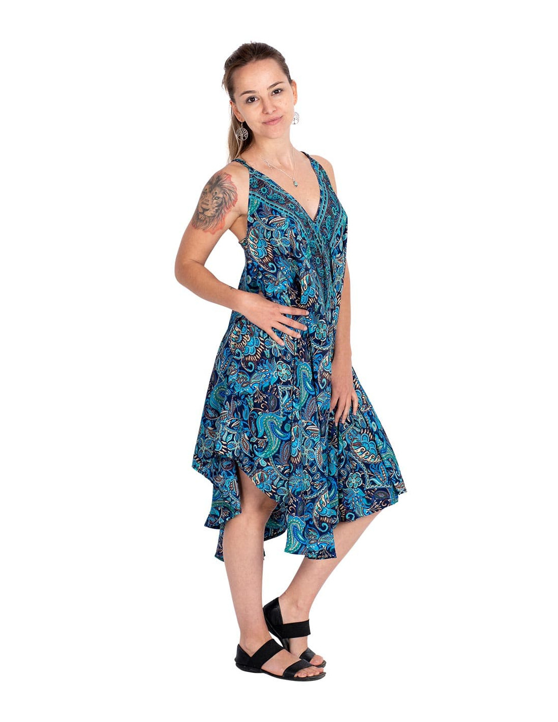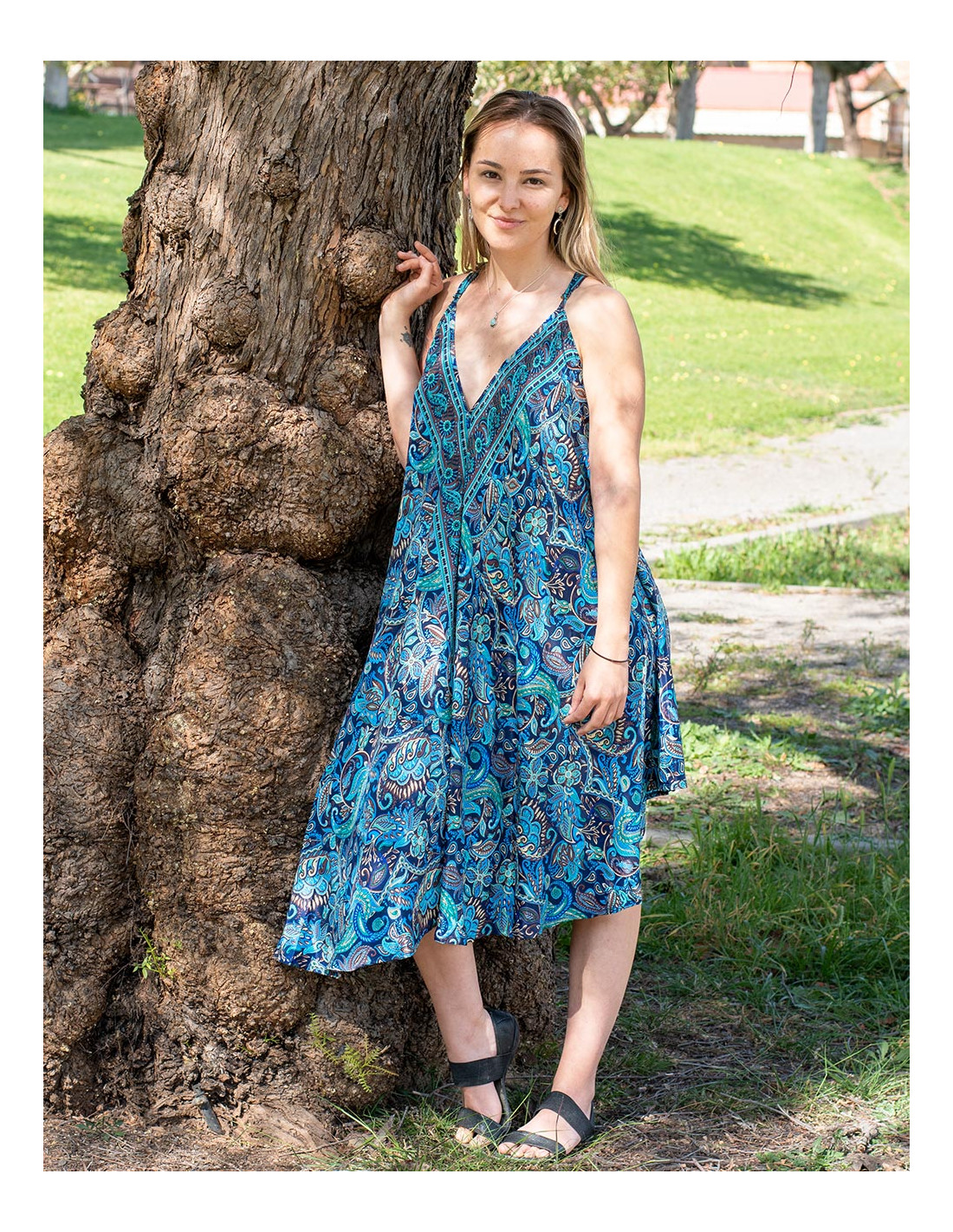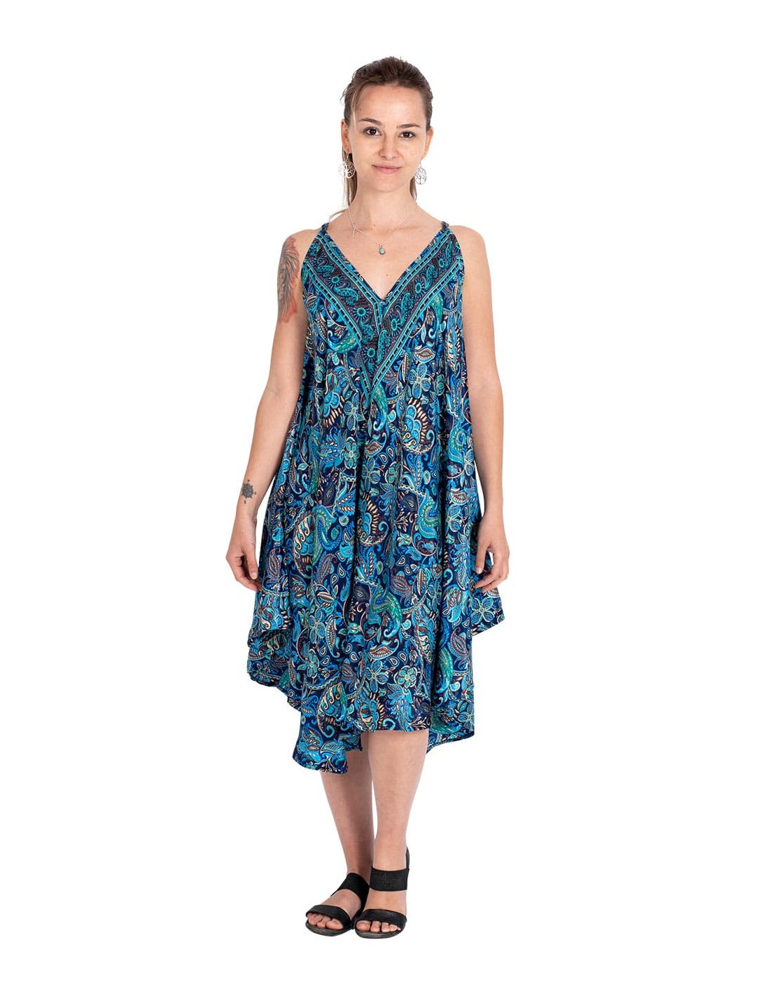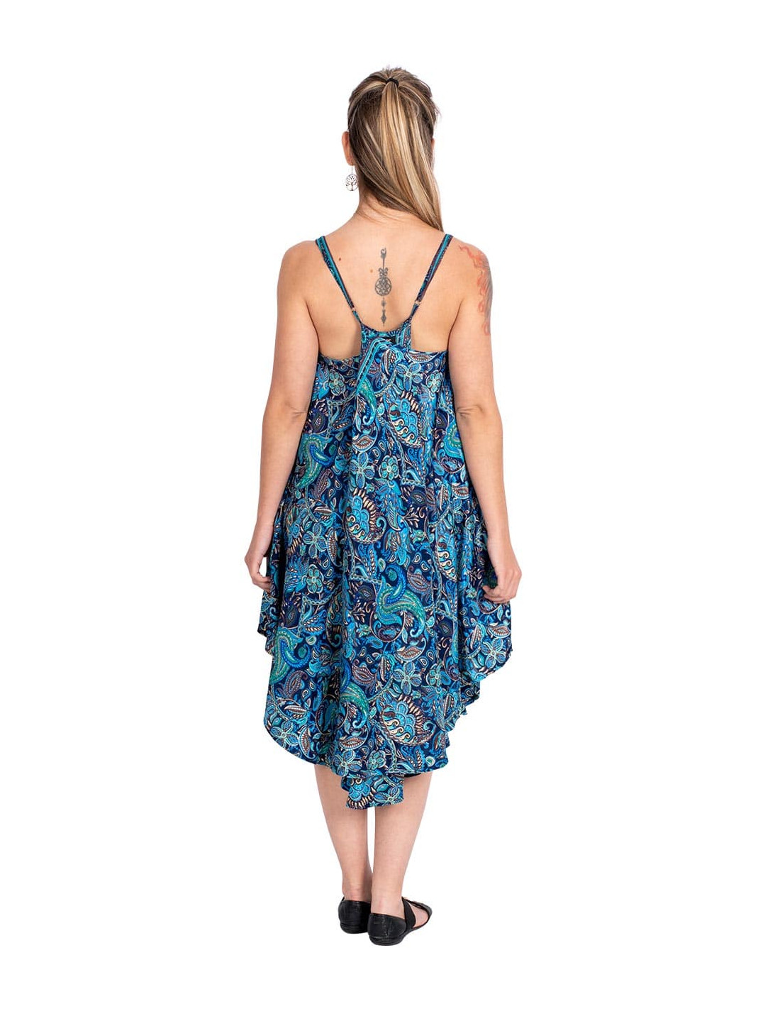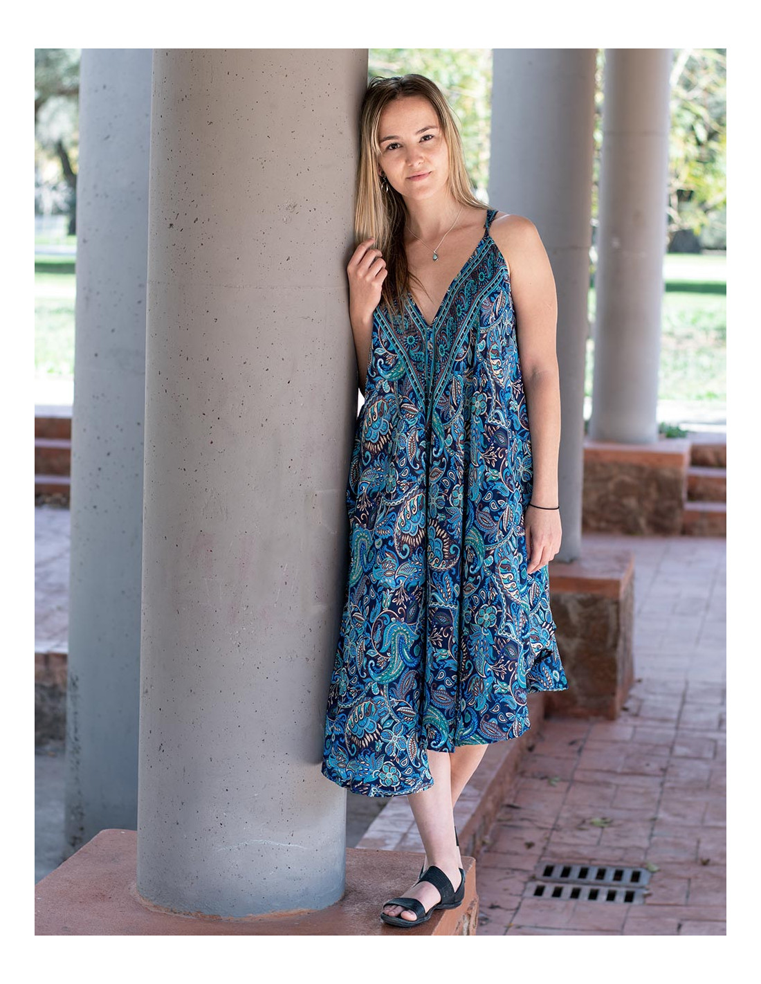 Straight and slim trousers made of silk with paisley designs in blue with flower designs in various colors It belongs to the collection with the project: