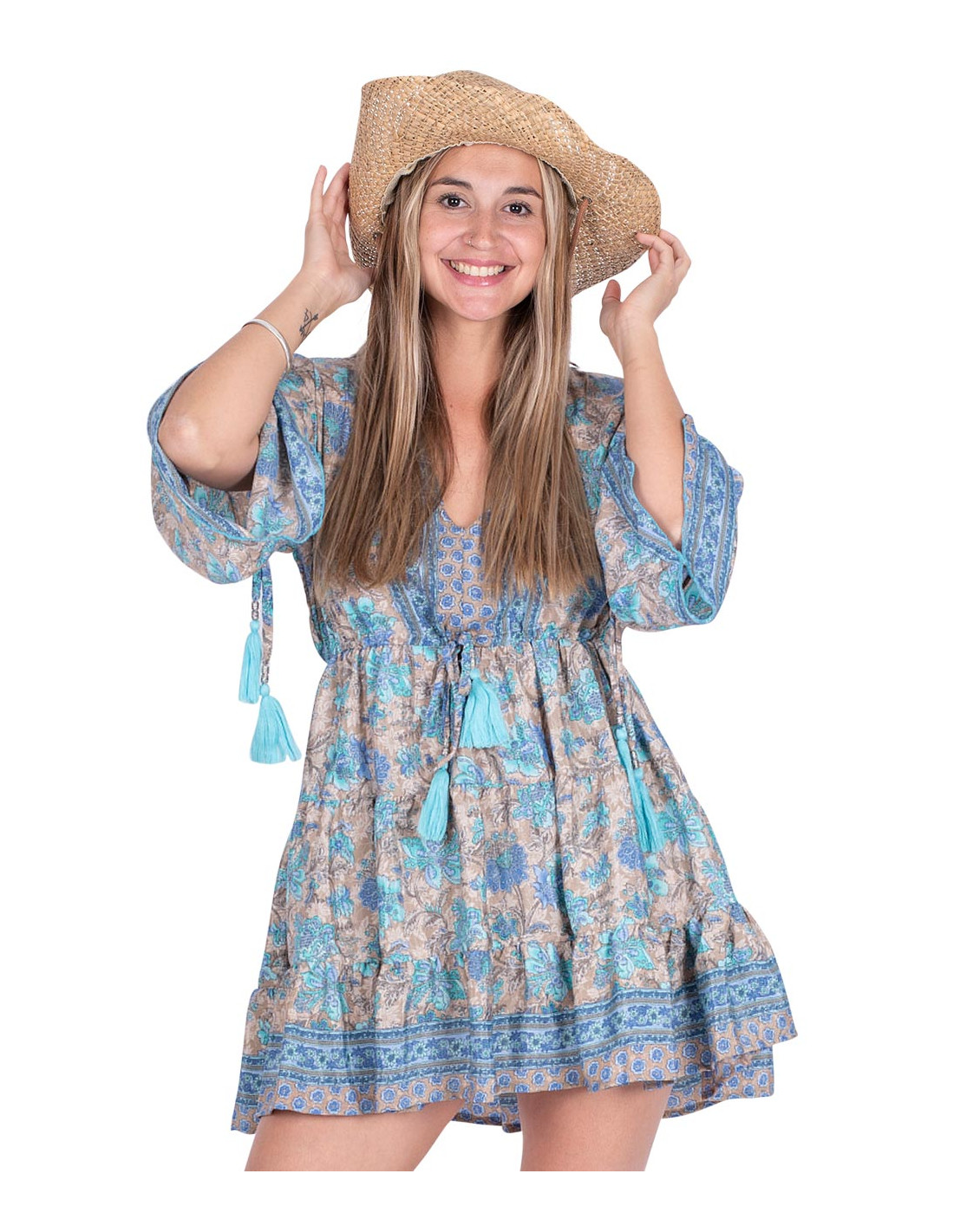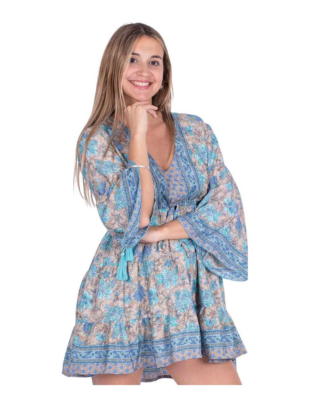 Short jumpsuit made of green rayon with straps and elastic at the waist It belongs to the collection with the project: