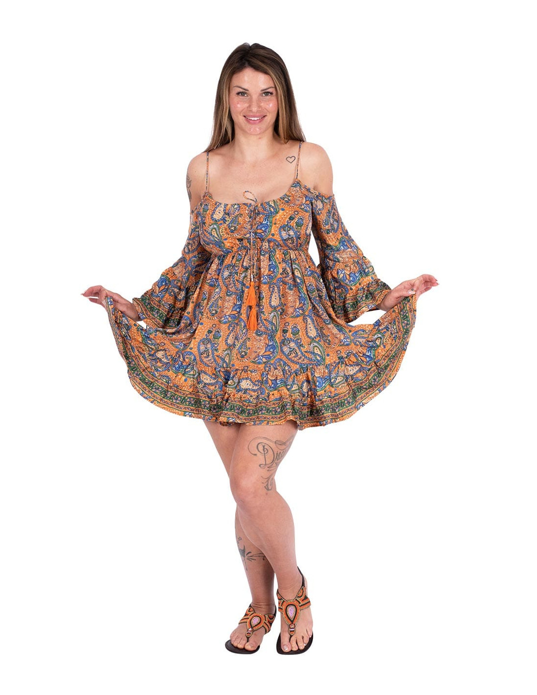 Bone necklace with pendant in natural brown color
