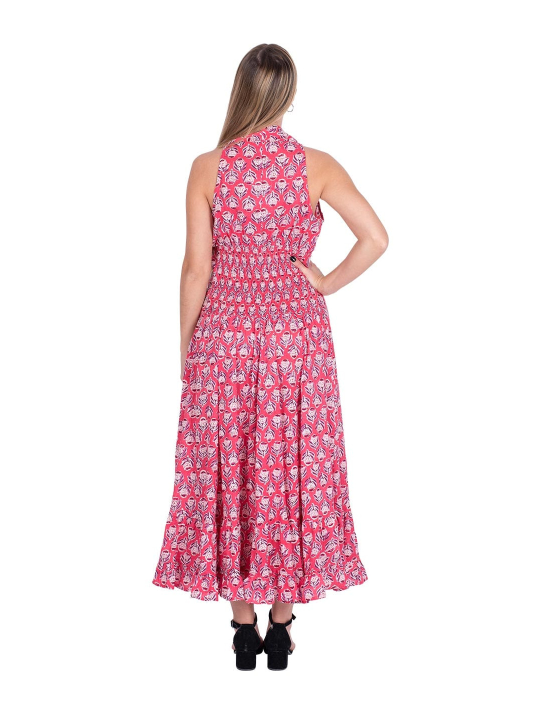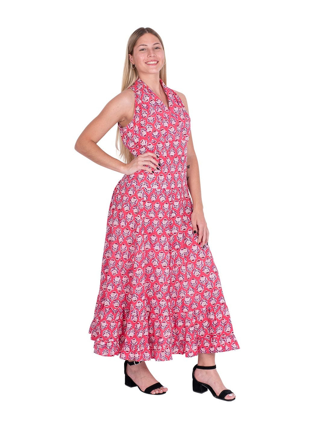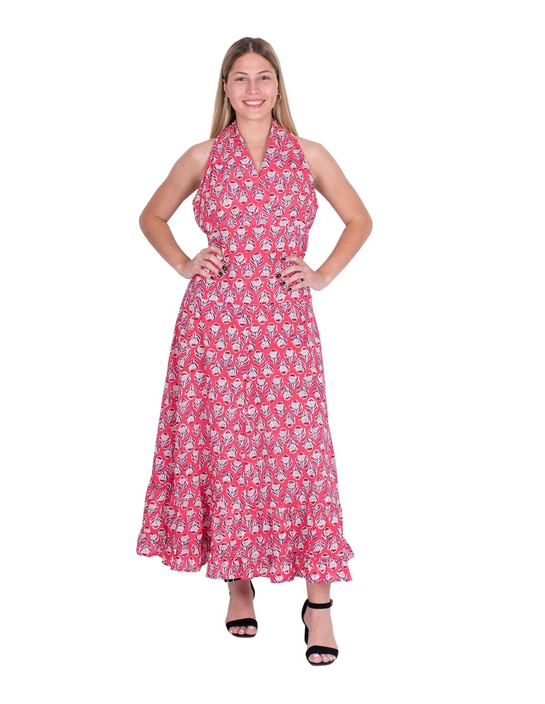 Versatile garment that can become pants, jumpsuit, dress or blouse. Made of silk with a light blue background and drawings in blue and pink It belongs to the collection with the project: