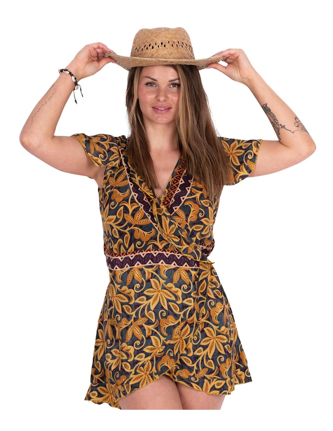 Printed silk dress with deep V-neck that is repeated on the back It belongs to the collection with the project: