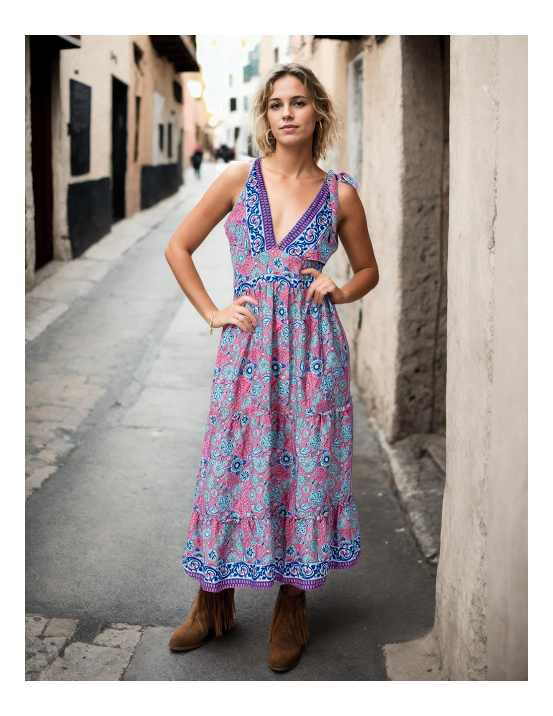 Beach style midi dress made of rayon in lilac color It belongs to the collection with the project: