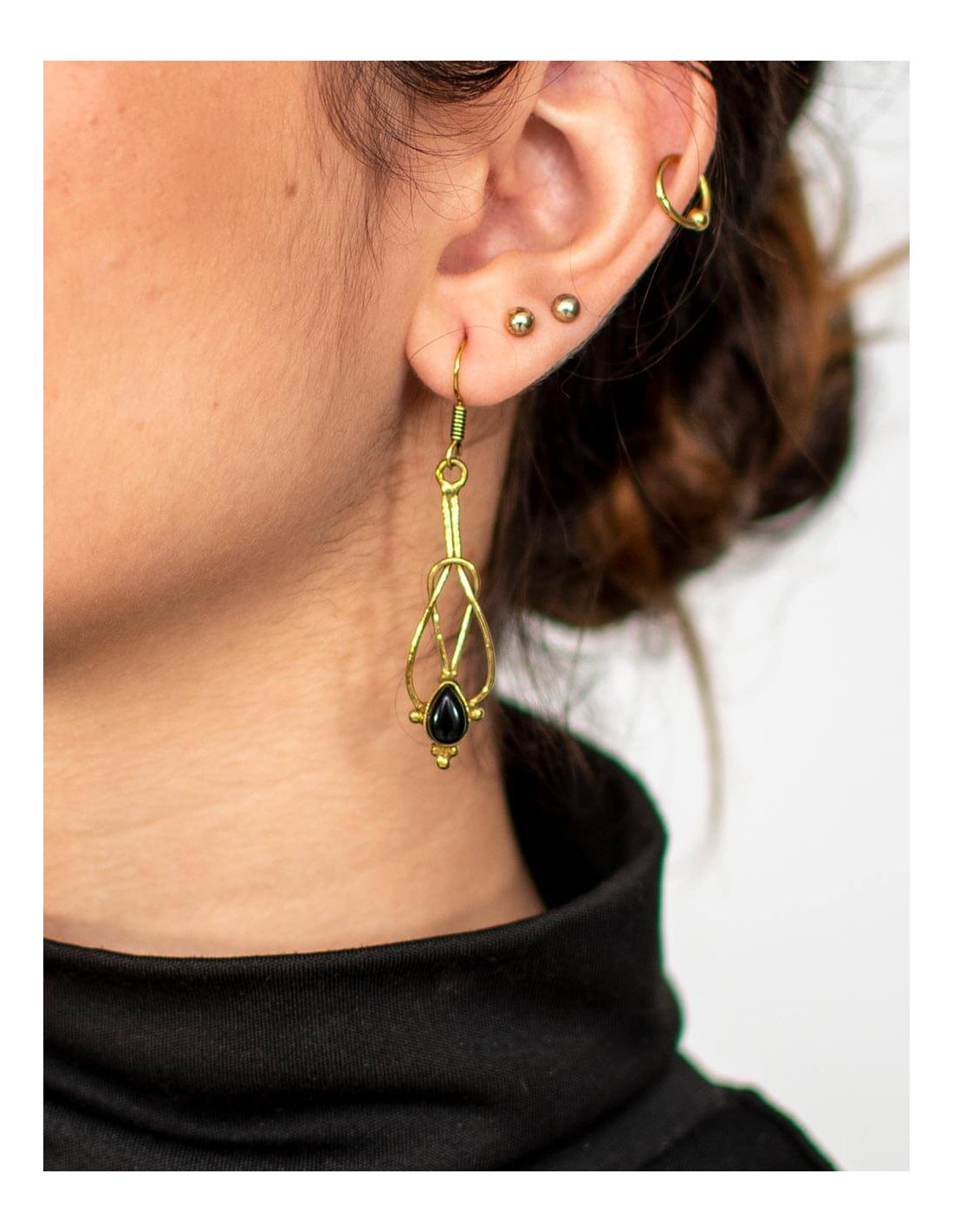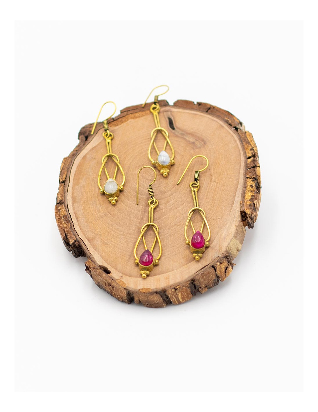 Elongated earrings made of gold-plated or silver-plated brass with a single mineral stone.