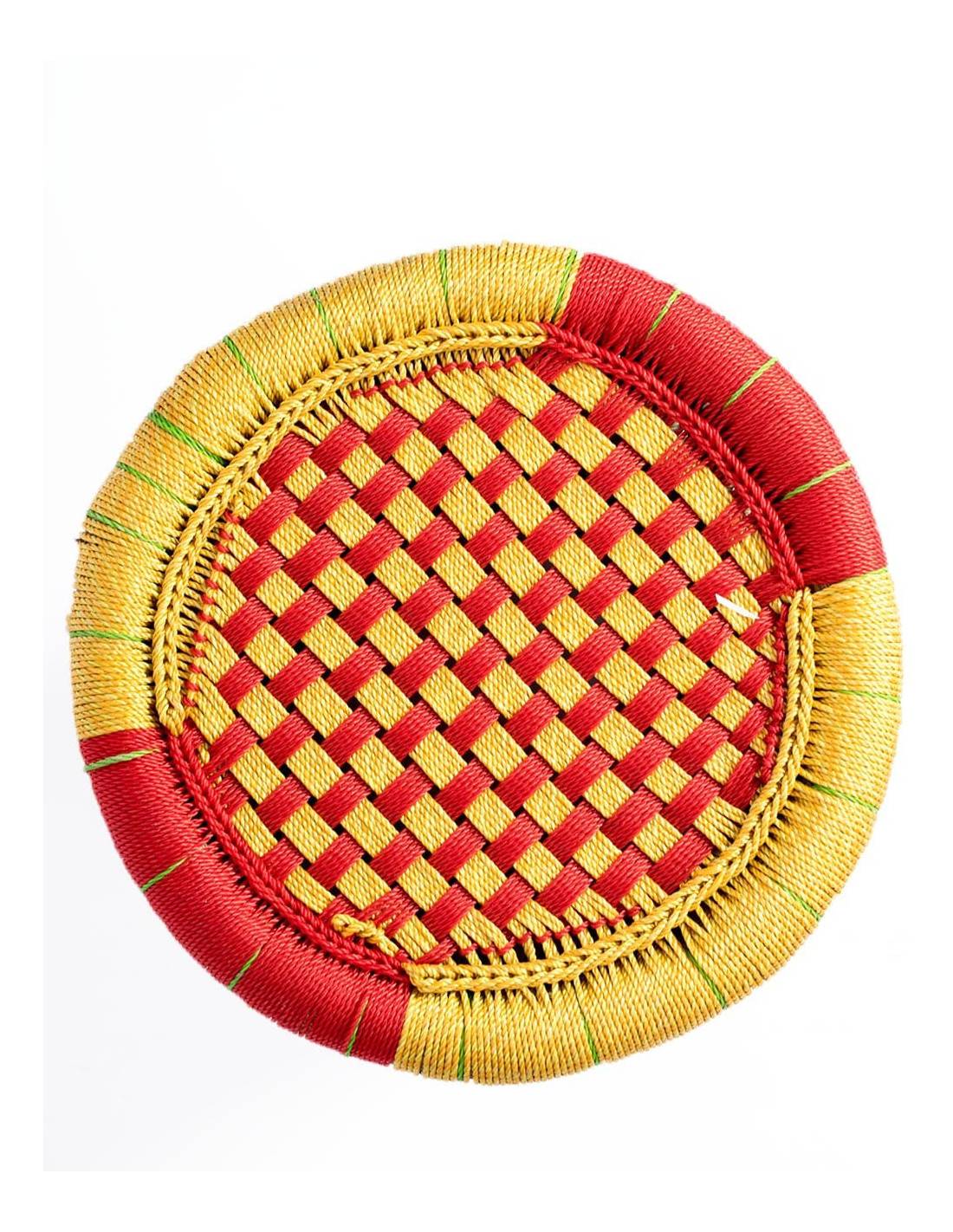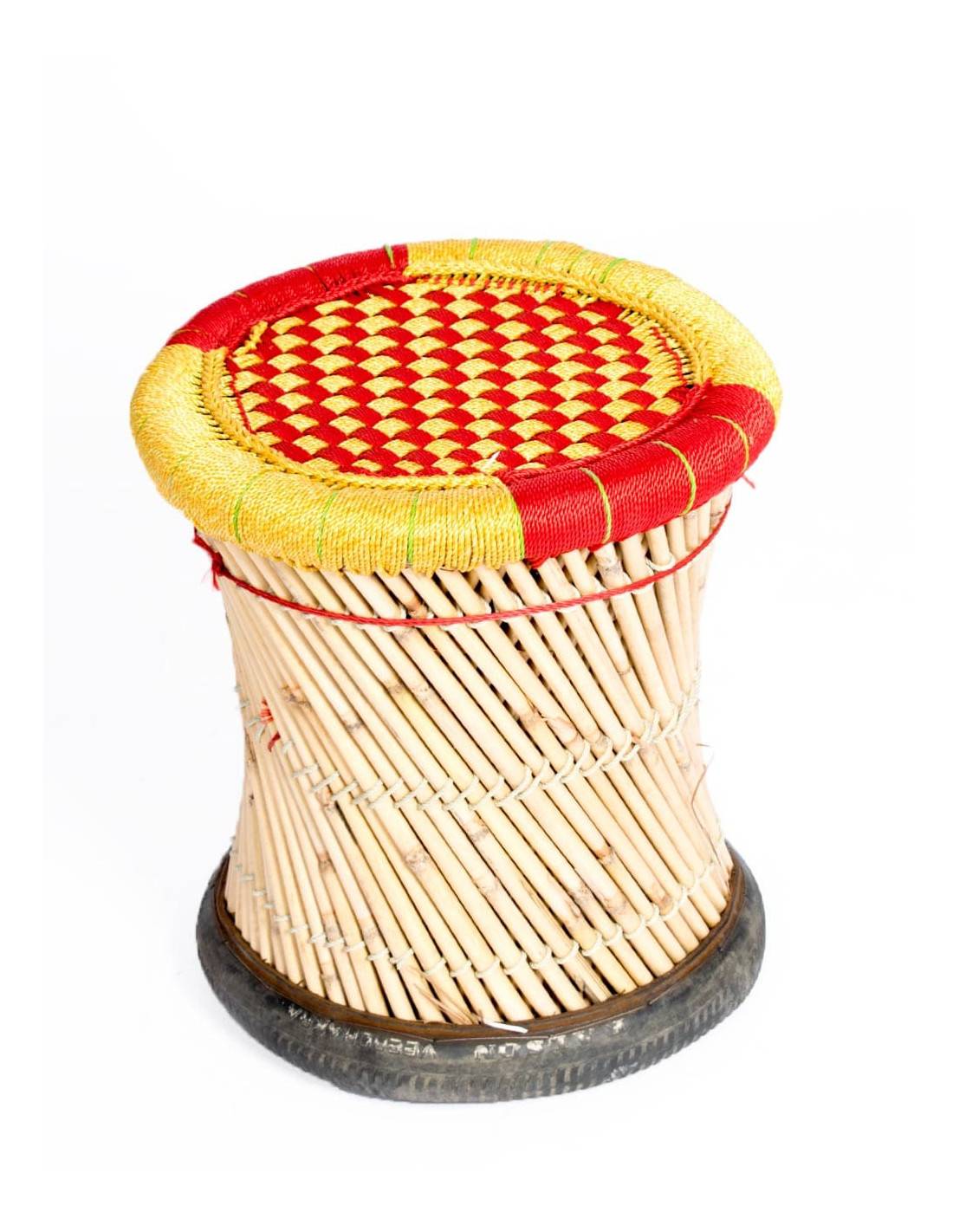 Bamboo stool with yellow and black woven seat