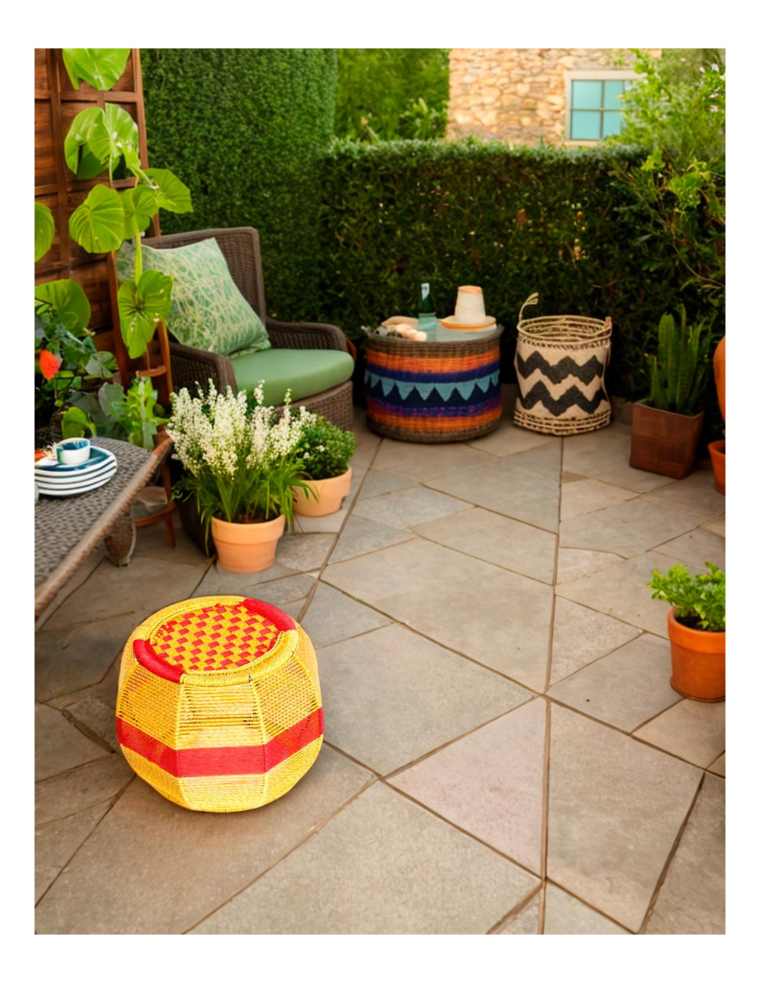 The entire structure is covered in nylon rope to give it a unique style and the upper part has the same braided rope, which gives it a comfortable seat.