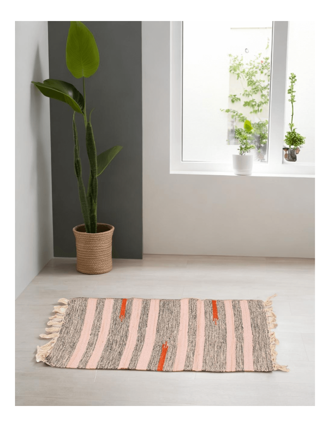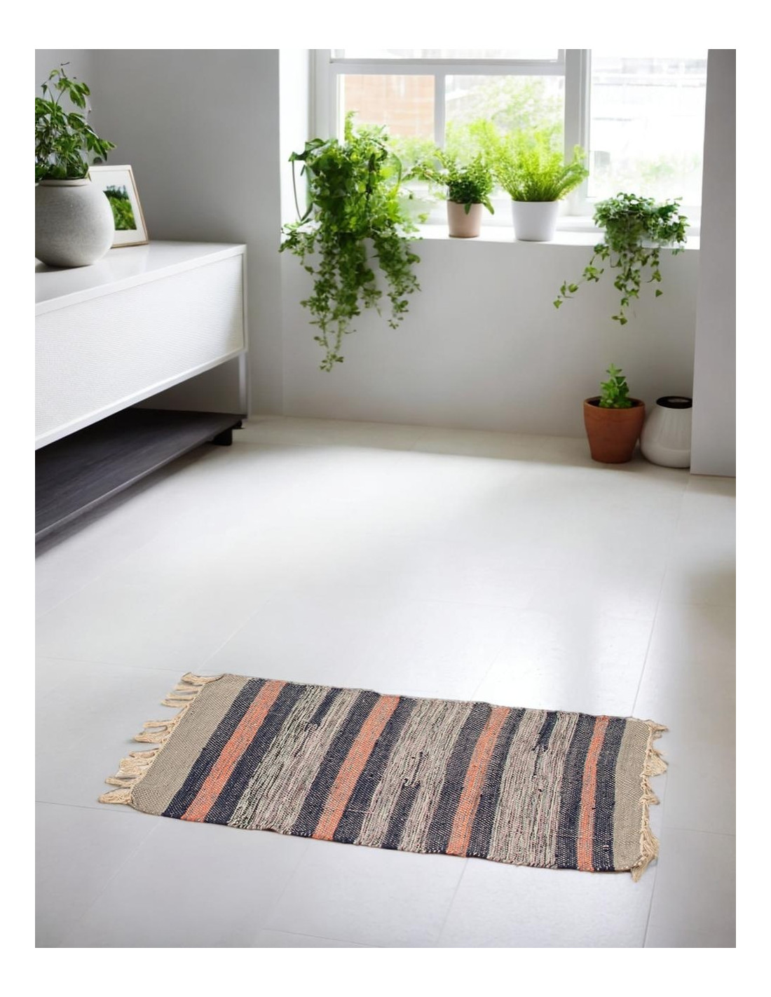 Ethnic handmade rug with fringes | Kimago