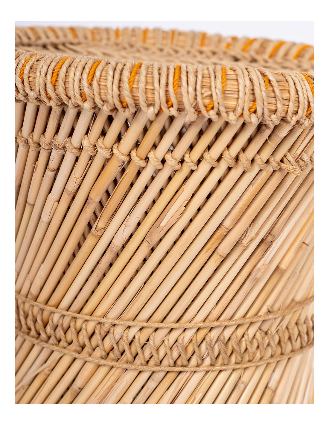 The Kimago bamboo stool is a piece that combines functionality and artisanal essence. Handcrafted in India, it features a sturdy yet lightweight natural bamboo frame , along with a handwoven seat that provides elasticity, comfort, and a genuine finish.