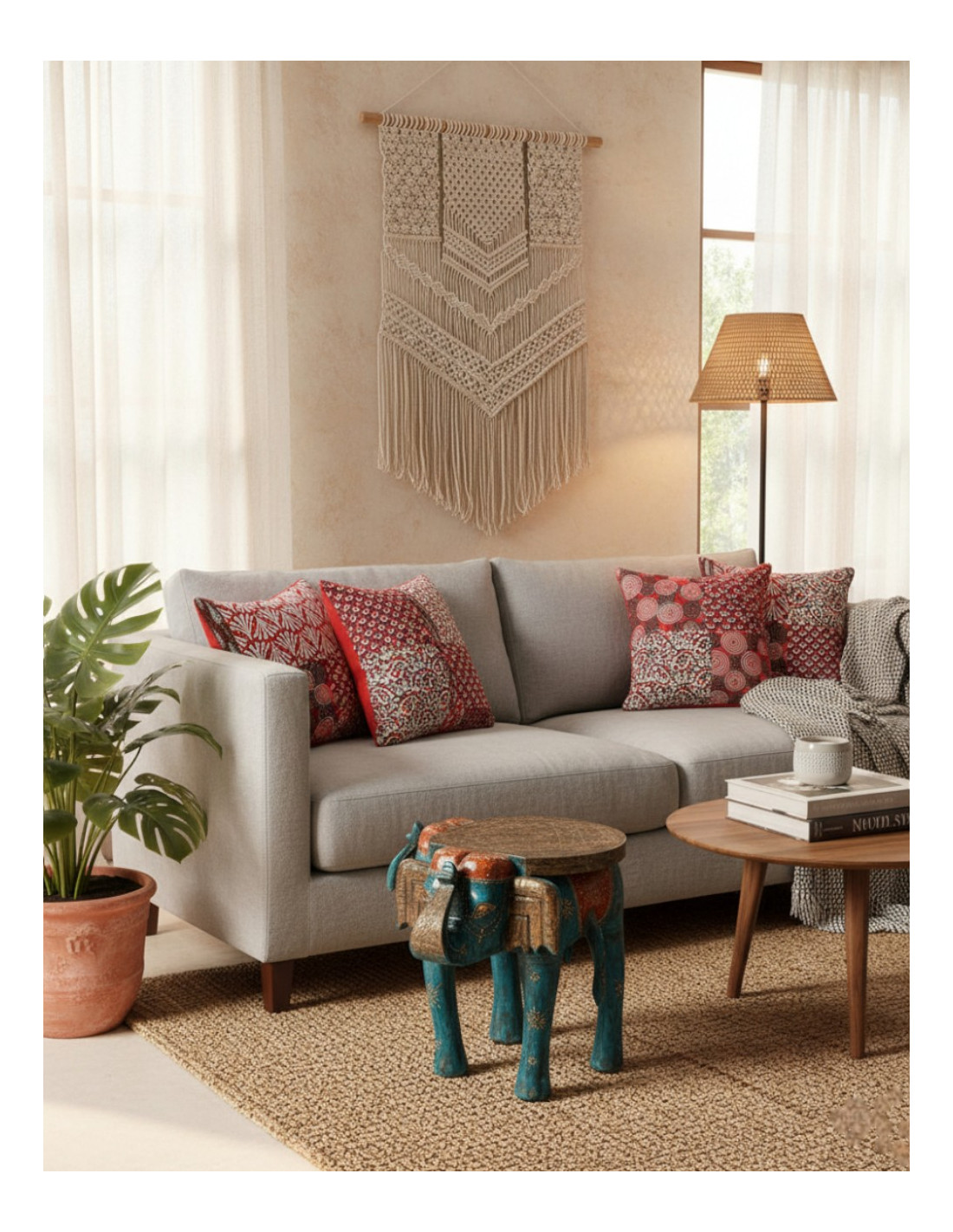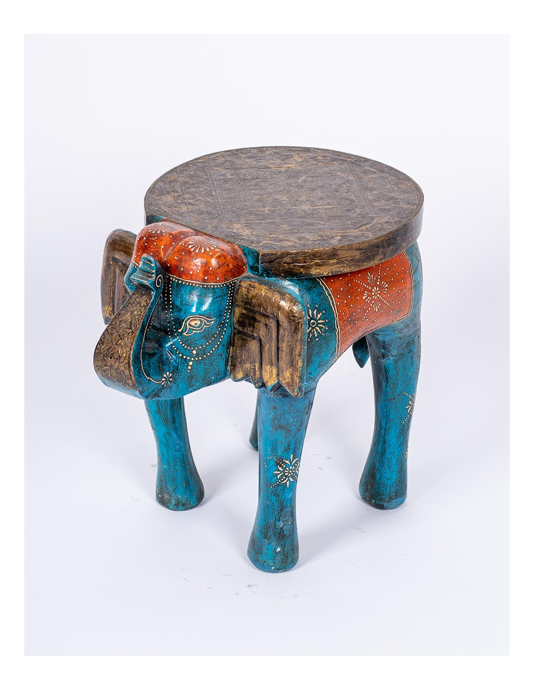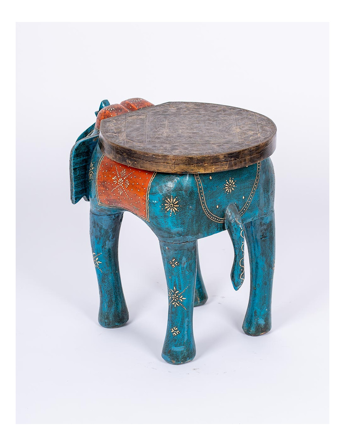 The Kimago elephant bench is a decorative piece that combines functionality with traditional Indian craftsmanship. Made of solid wood and carefully hand-painted in India , it stands out for its ethnic design full of personality and cultural symbolism.