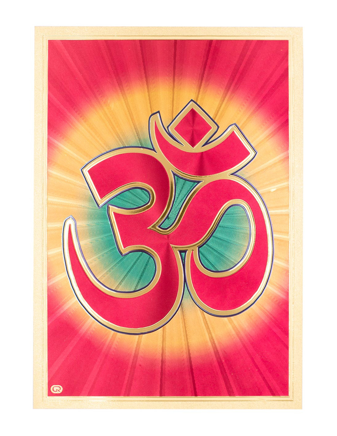 Gold foil with the Om symbol, available in two colors: one completely gold and the other is also gold but the symbol is red with green tones behind.