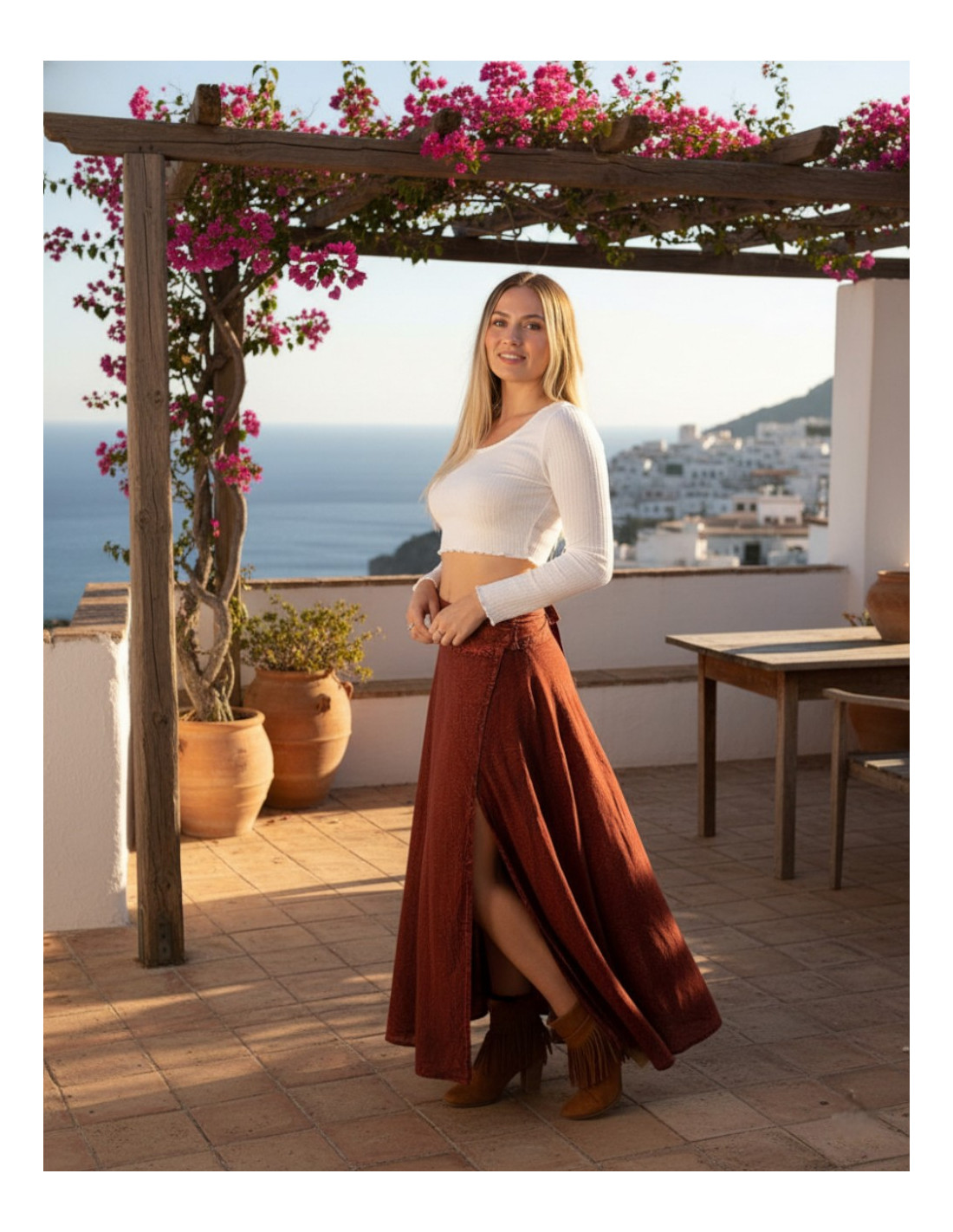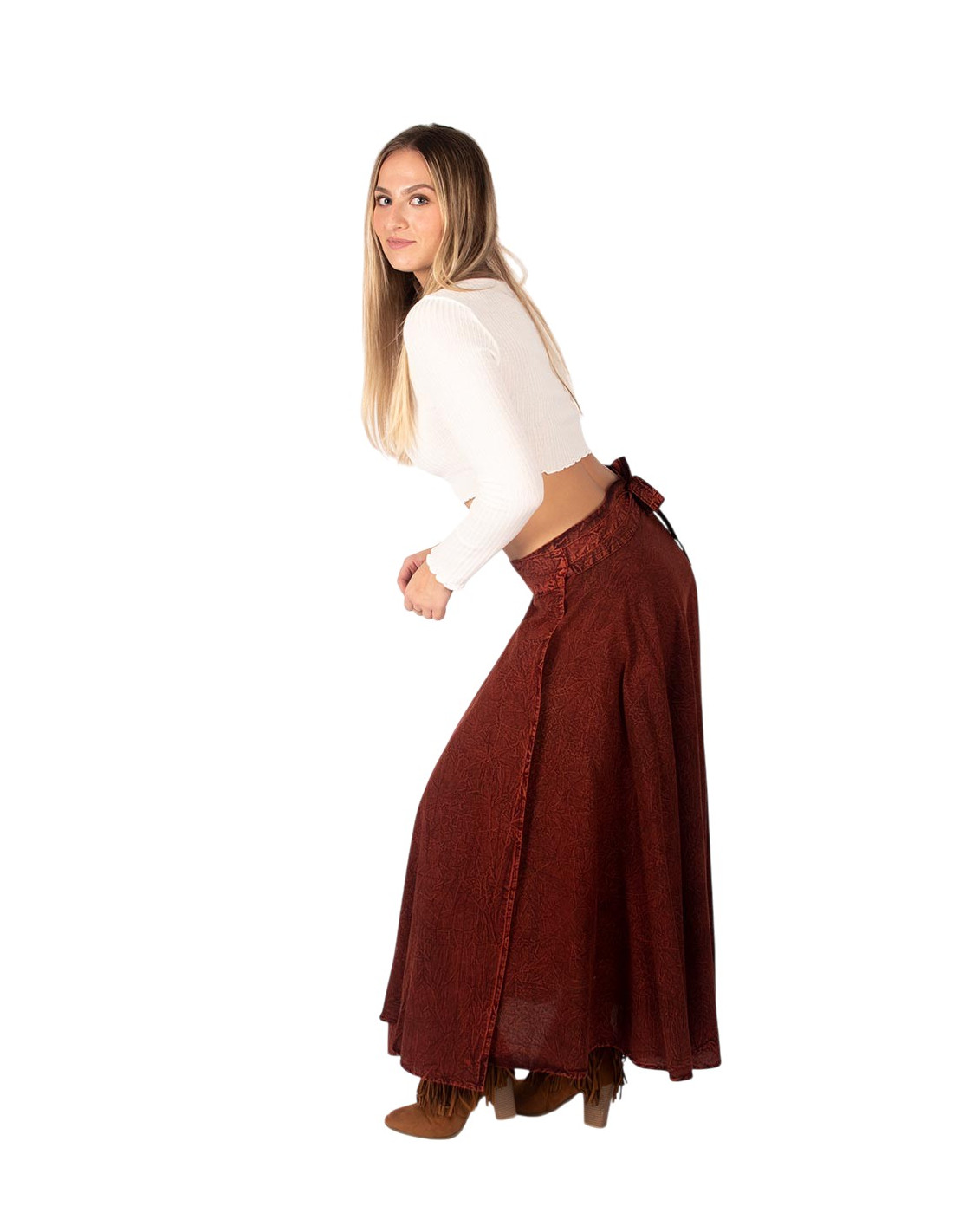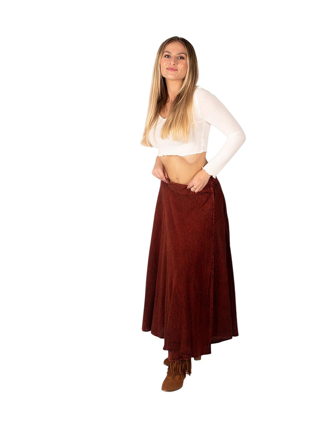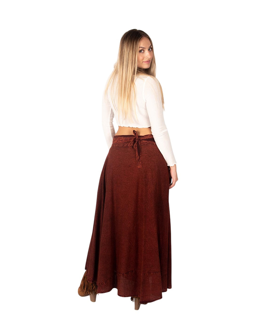 Long reddish brown boho skirt | Kimago