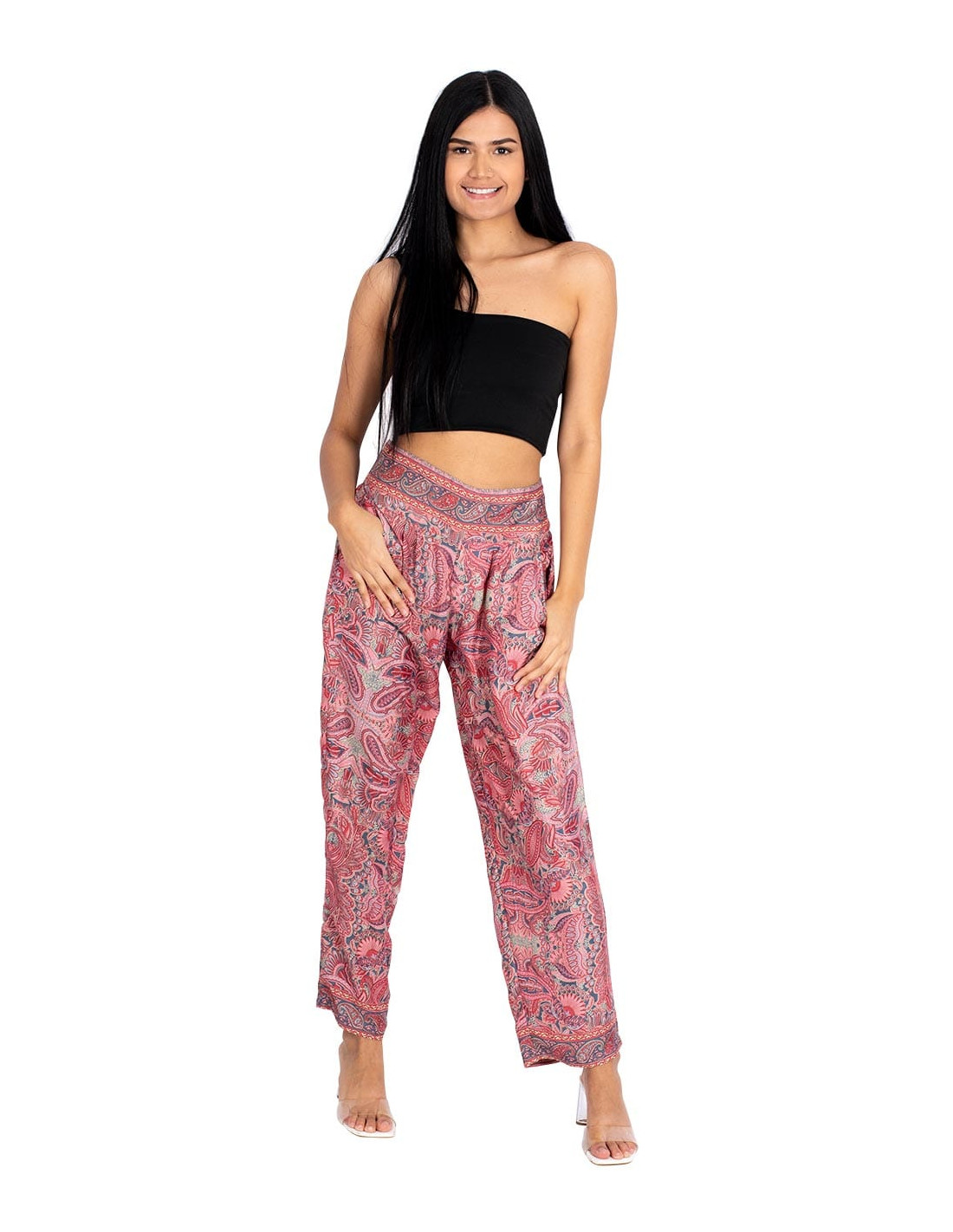 Jeans Tajo wide pants KM0301A Wide trousers made of silk open on the sides. Made of printed silk It belongs to the collection with the project: View