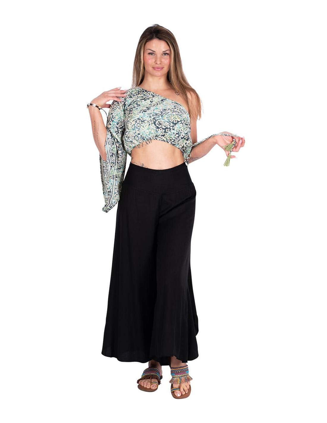 Long buttoned dress with short sleeves and adjustable waist. The background color is gray, but the yellow drawings stand out a lot It belongs to the collection with the project: