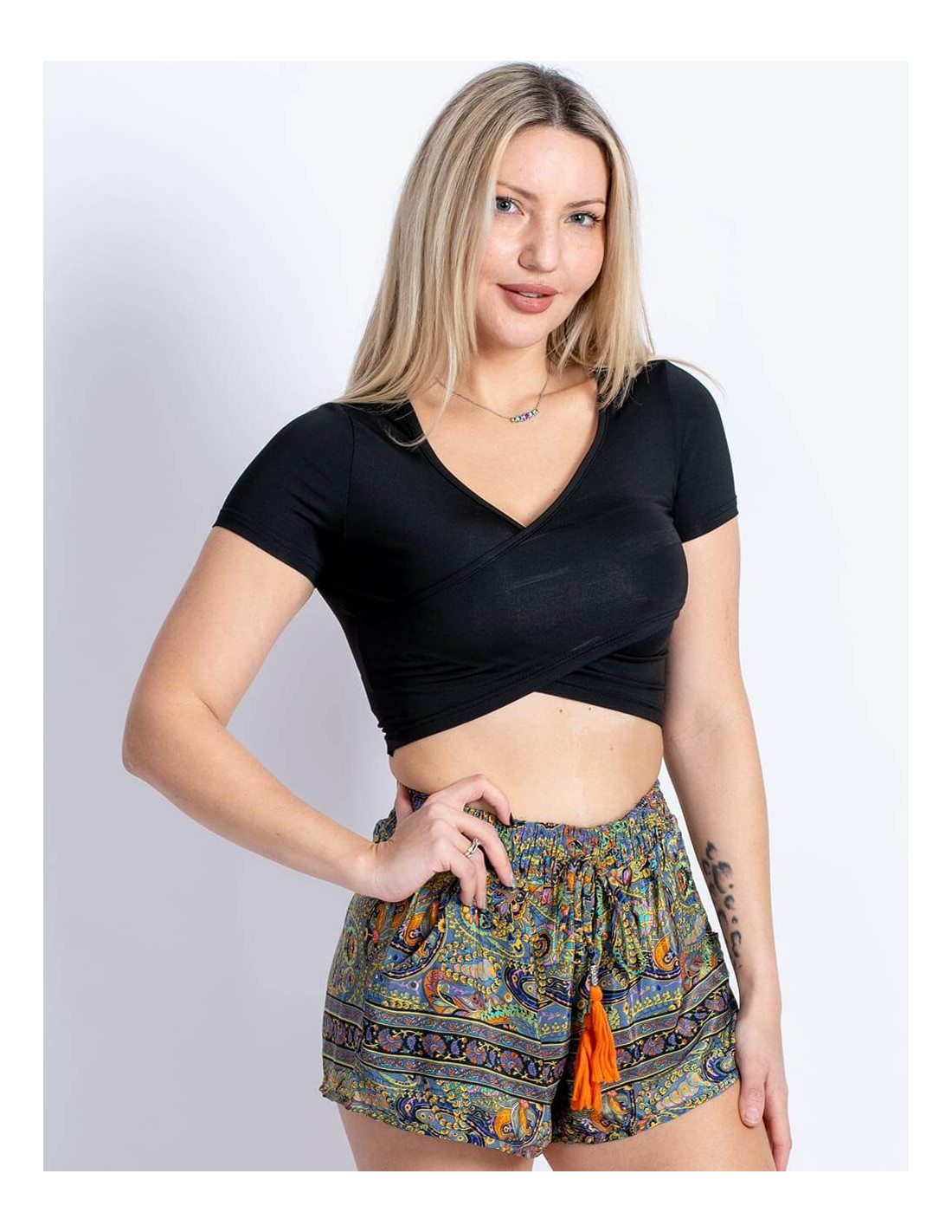 Kimago silk and polyester long dress. Featuring a V-neckline, a pom-pom bow, and an elasticated back for a comfortable and elegant fit. It belongs to the collection with the project: