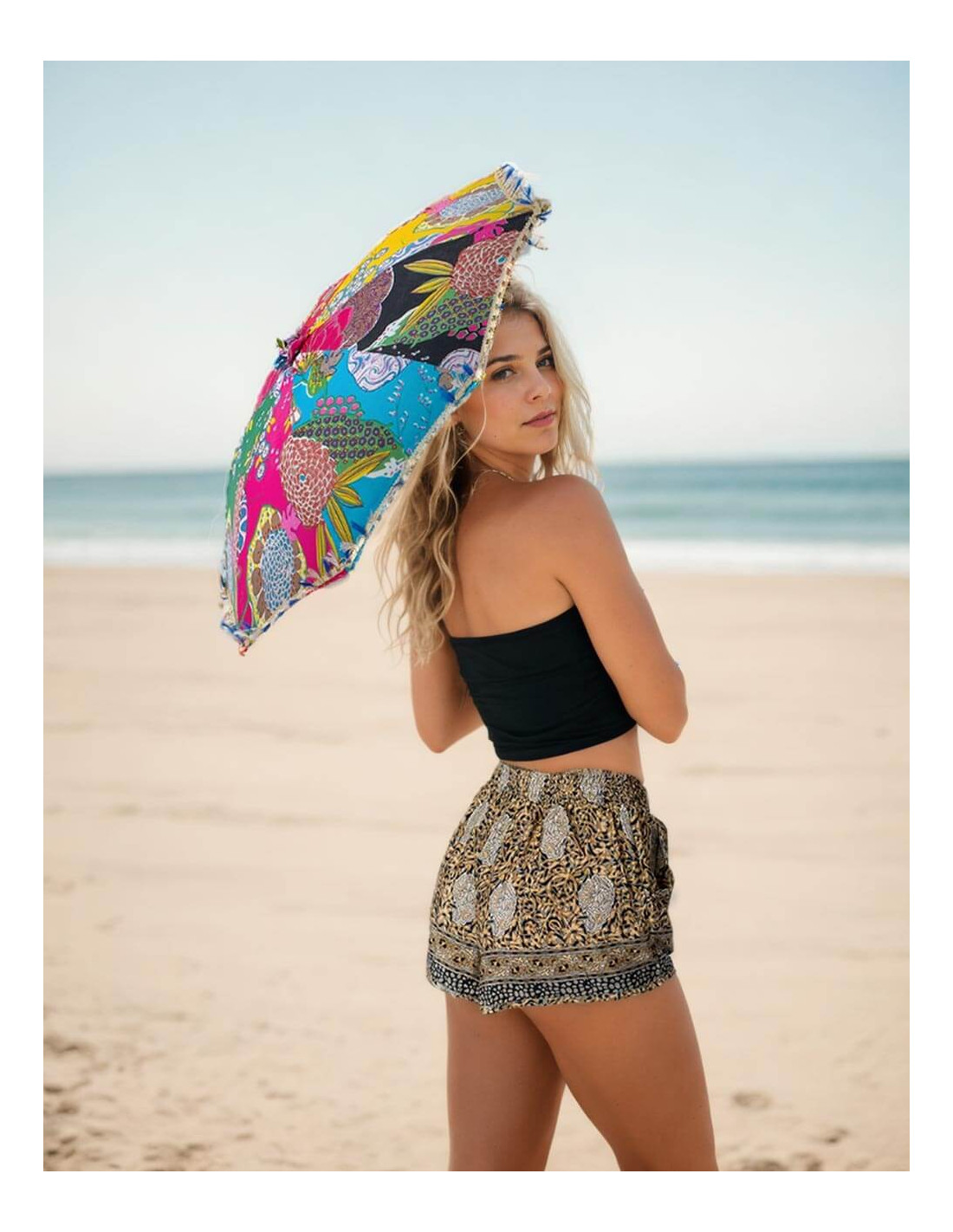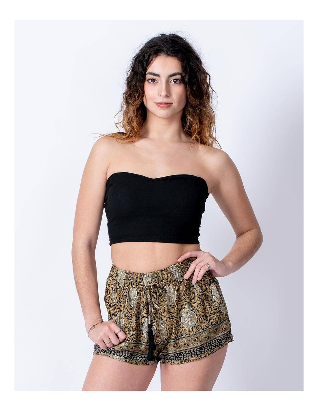 Basic sleeveless t-shirt in yellow with paisley print It belongs to the collection with the project: