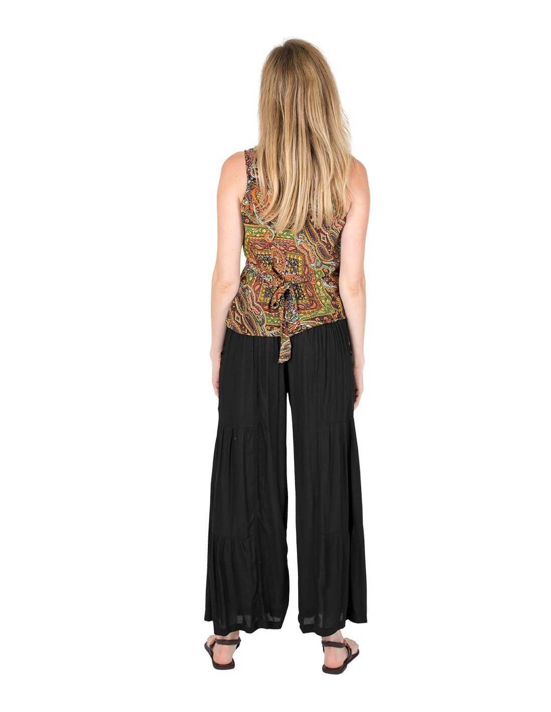 Short wrap dress with straps on a blue background and drawings in red and other shades of blue