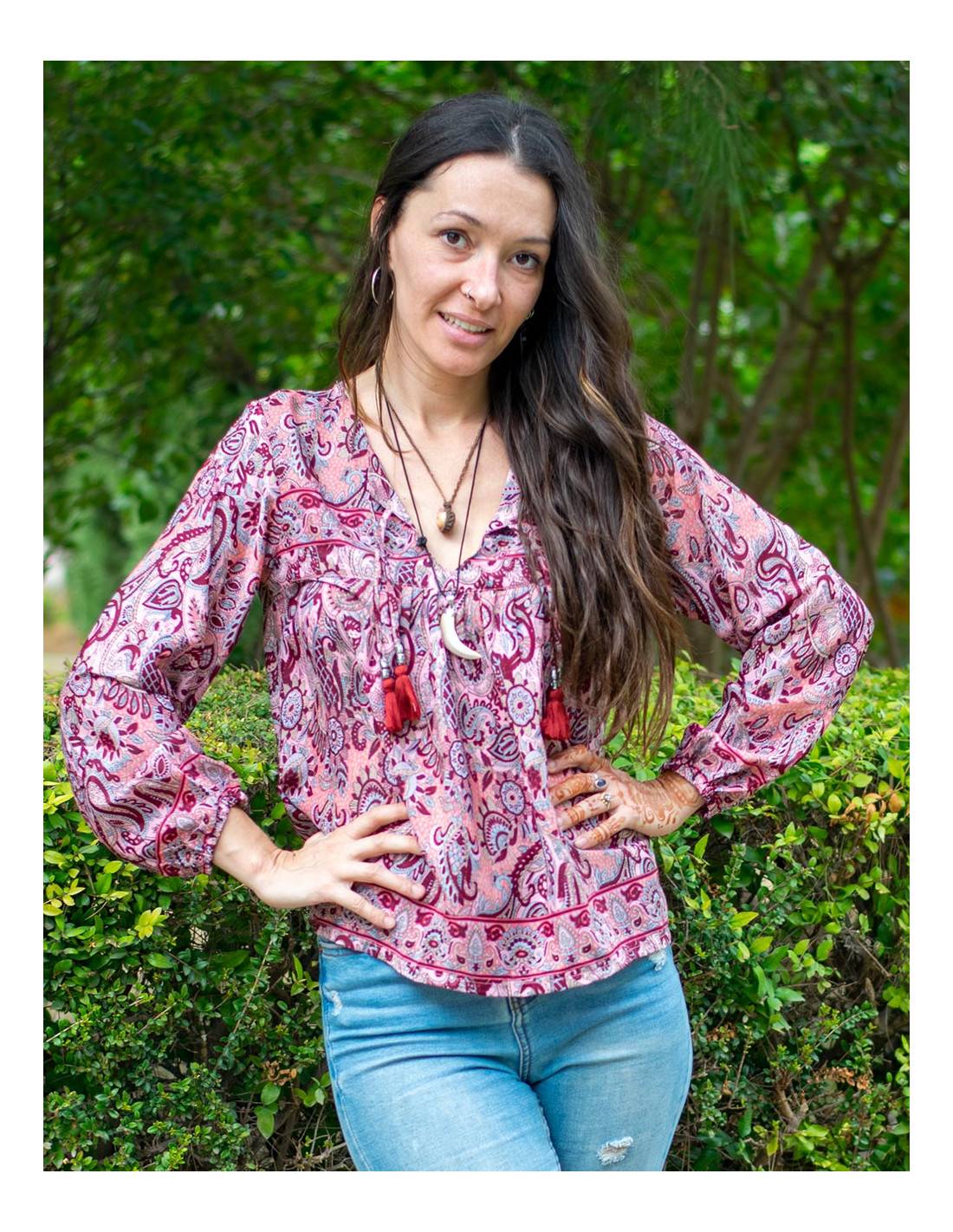 Skirts Silk Buttoned Skirt MFA7001B Skirt made of silk, long and buttoned. Printed with a purple background and pink drawings View