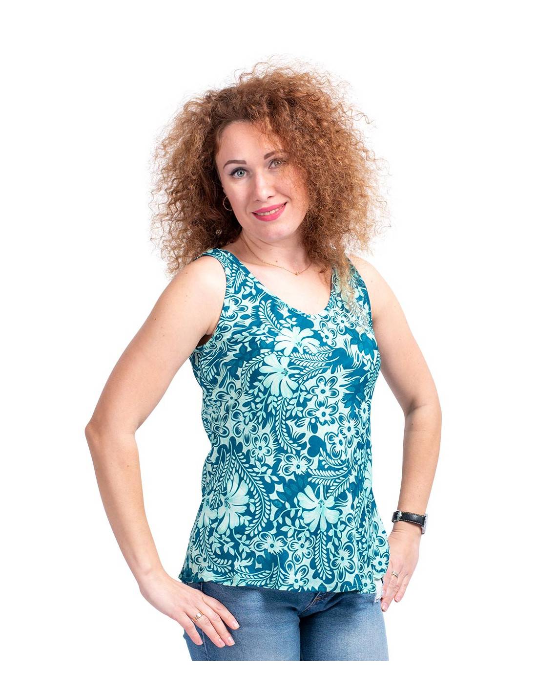 Blusas y Camisetas Tank Top MCA0001B Silk top with wide straps and a round neckline printed in light blue tones View
