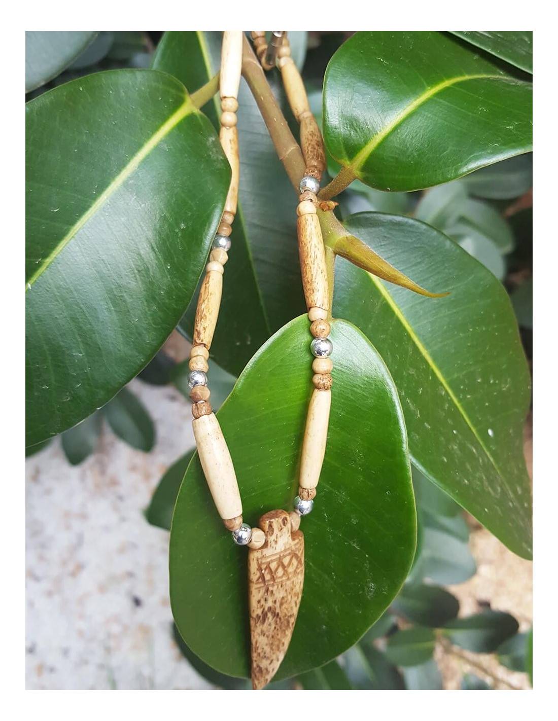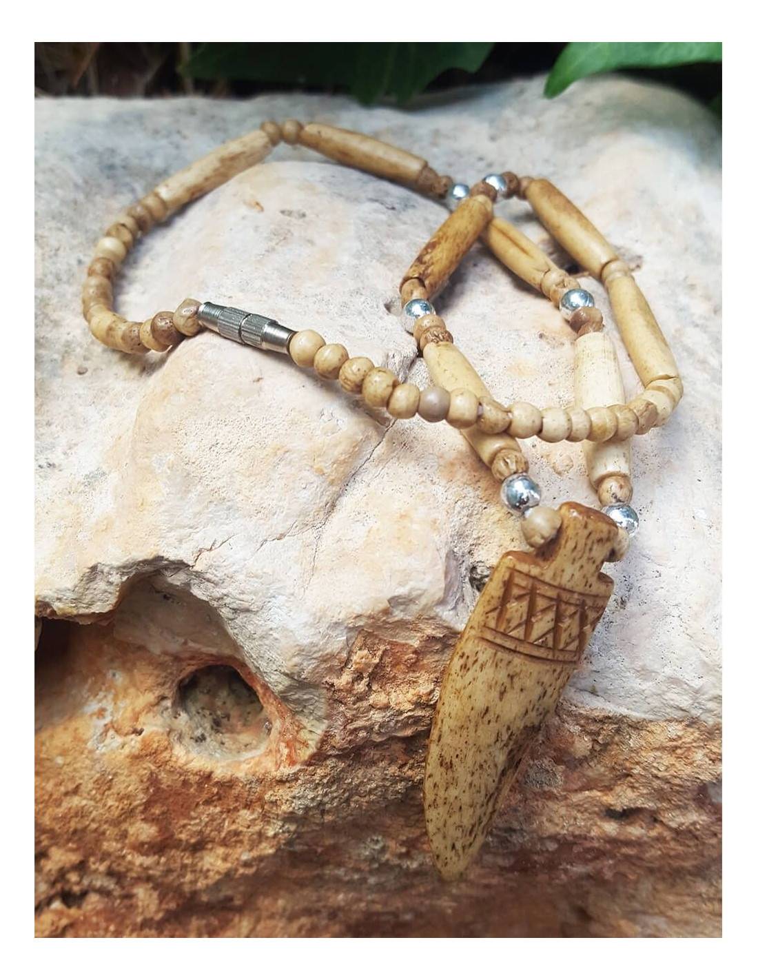 Bone necklace with pendant in natural brown color