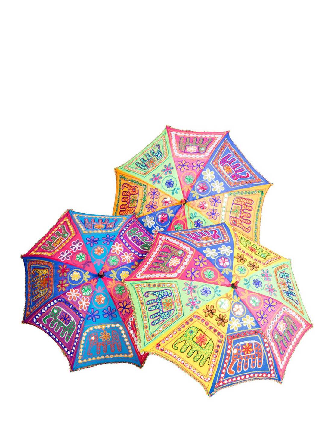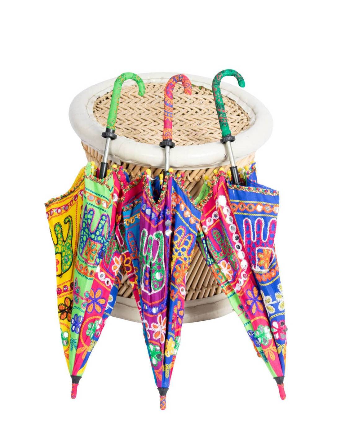 Multicolored umbrella made by hand with ethnic drawings. These are random models because the colors of the different units are all different and are delivered randomly.