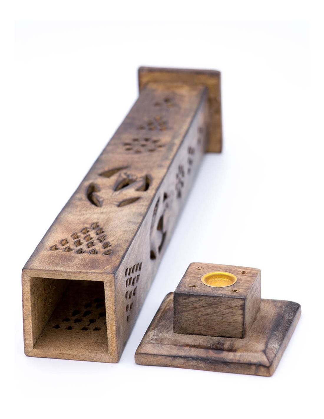Inside it has brass aggregates where the cone is placed and 4 holes to hold the incense sticks.