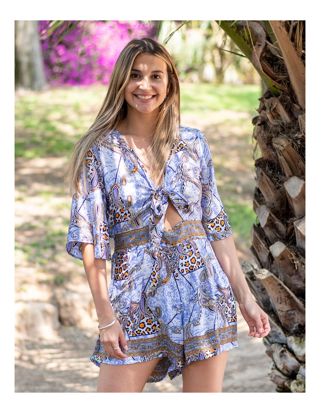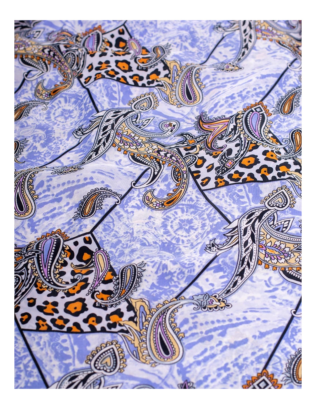 Fresh and comfortable shorts made of printed silk in orange tones with drawings in blue and other colors It belongs to the collection with the project: