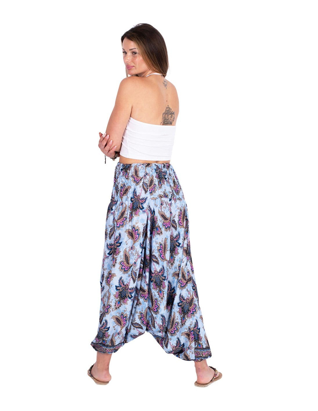 Long empire cut dress with a V neckline. Printed silk with light blue background and drawings in blue and hot pink It belongs to the collection with the project: