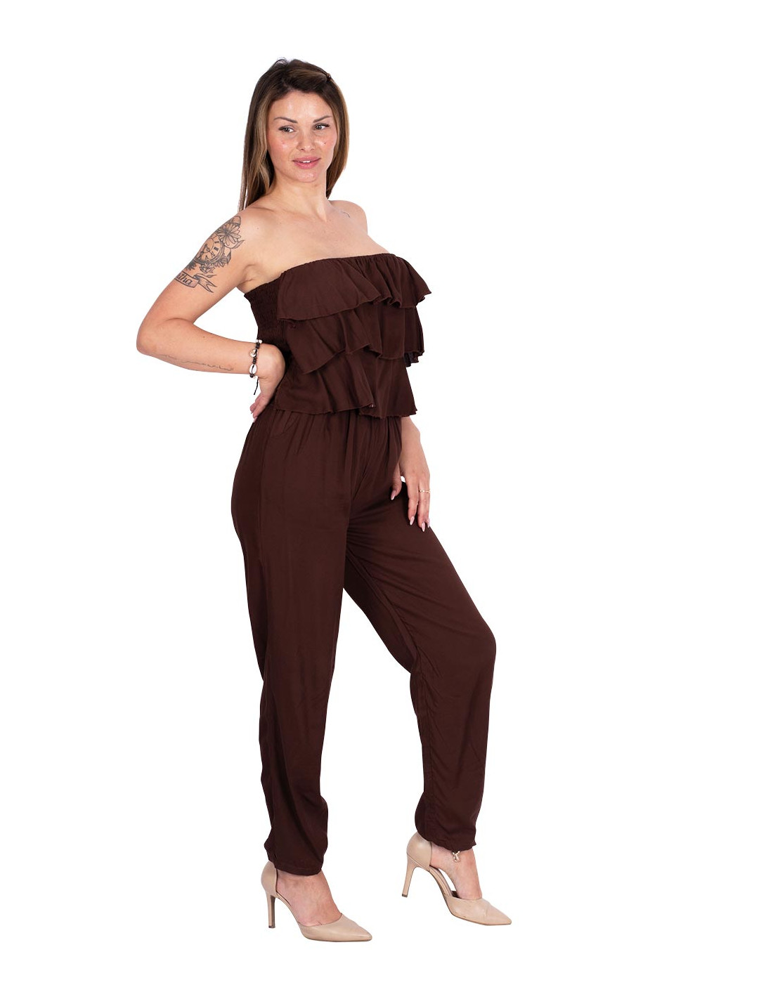 Straight pants with darts that extend them downwards. Made of red rayon/viscose It belongs to the collection with the project: