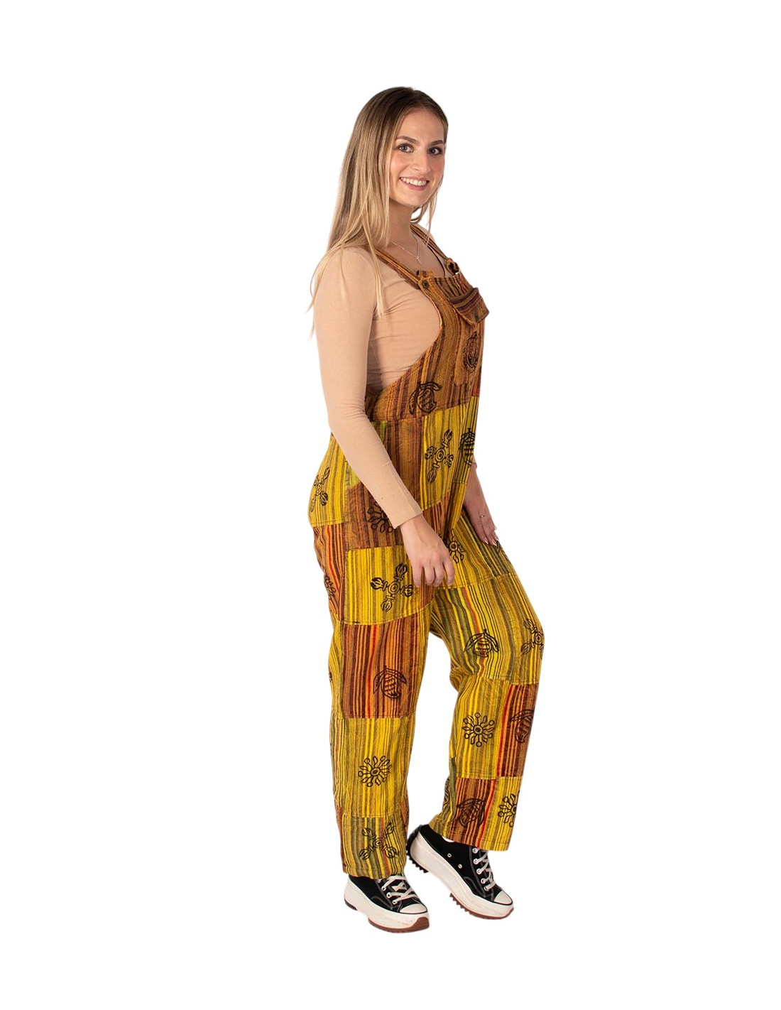 Kimago 's unisex patchwork jumpsuit combines the authenticity of Indian craftsmanship with the freest and most creative boho style.