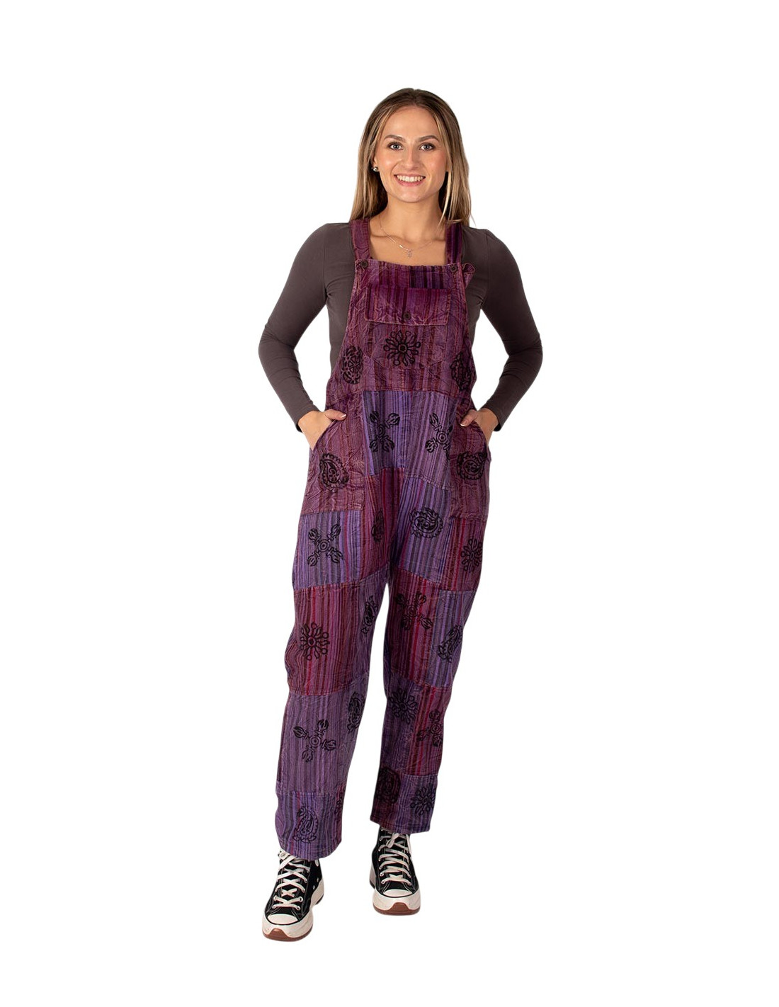 Crafted from natural cotton by artisans in India, this garment combines the essence of alternative fashion with boho charm. Its purple hue lends a mystical and creative air, while the relaxed fit with side buttons, functional pockets, and adjustable straps with wooden buttons ensures a comfortable and adaptable fit.