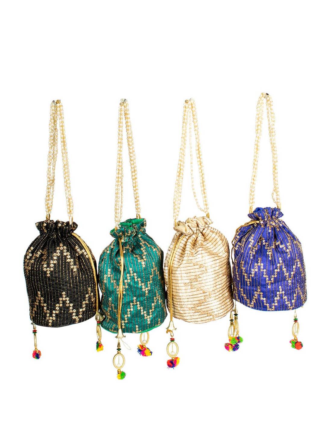 Very original ethnic bag with embroidered details in golden sons and added sequins