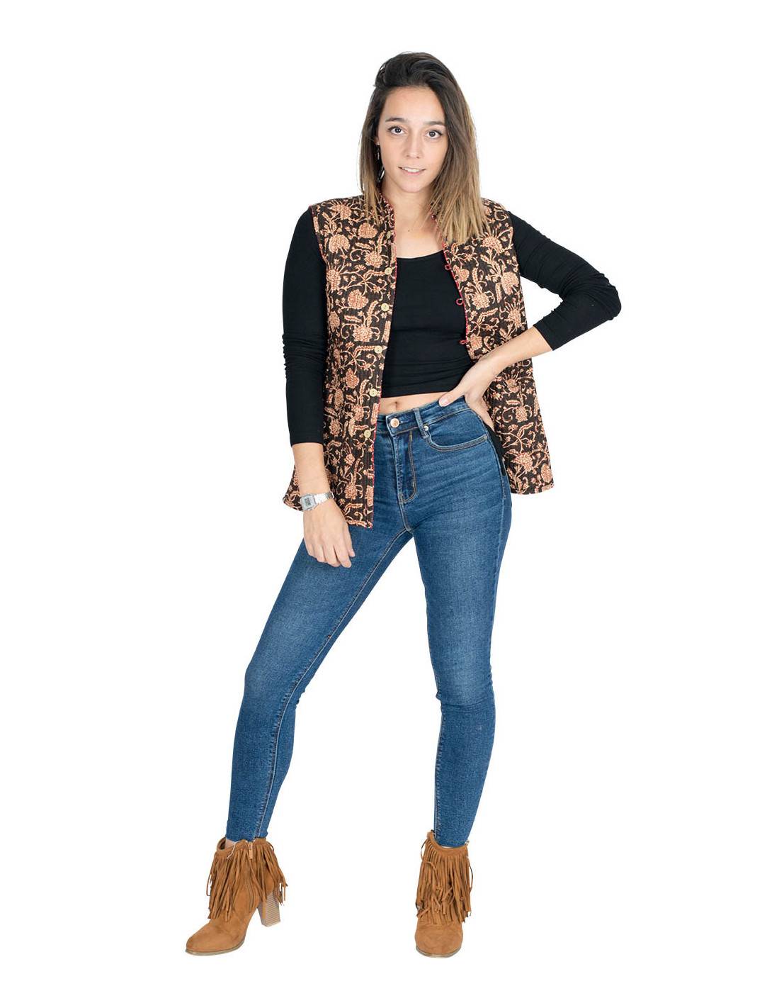 Round cushion cover made by hand with the embroidery of a pink elephant and colorful flowers around it