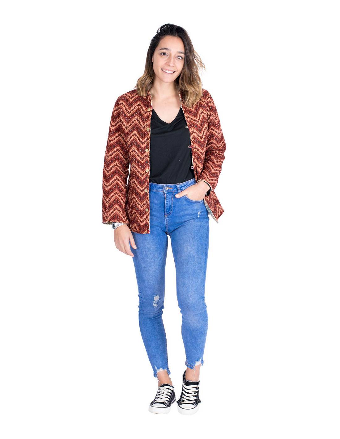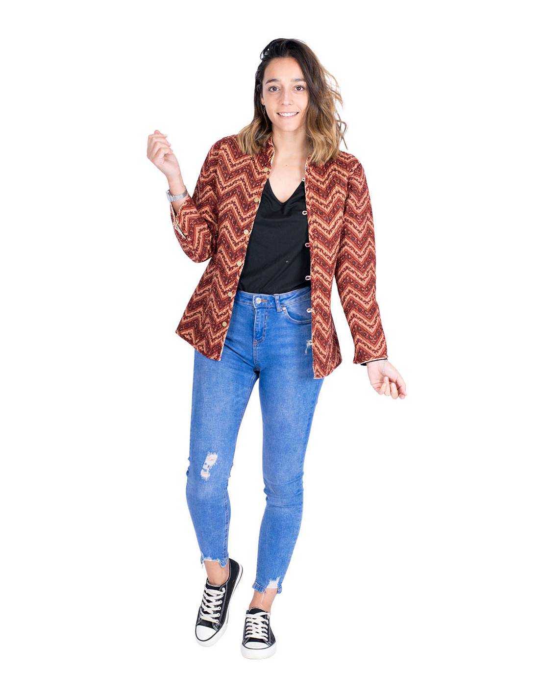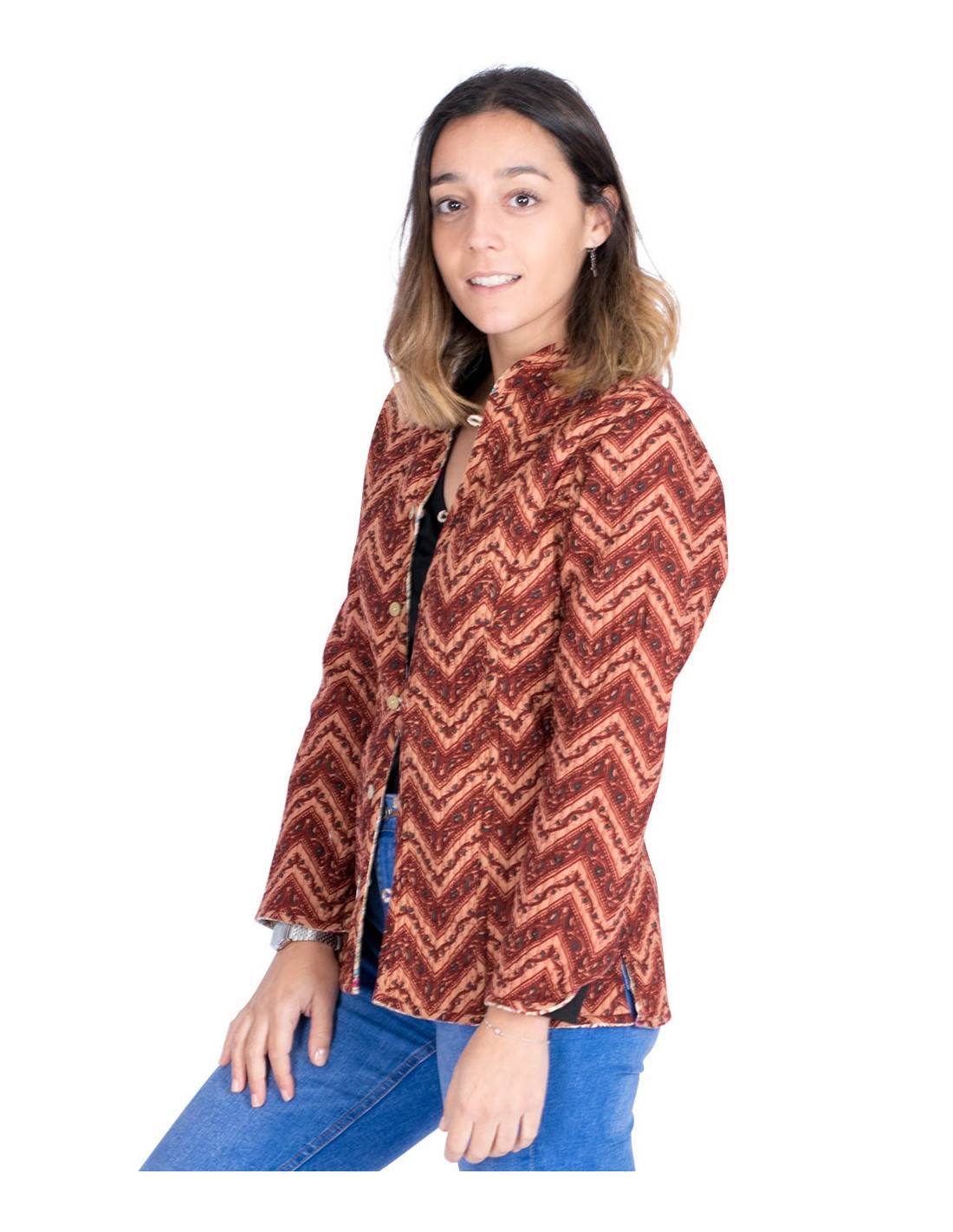 Long dress made of silk with a green background and paisely drawings in varied colors It belongs to the collection with the project: