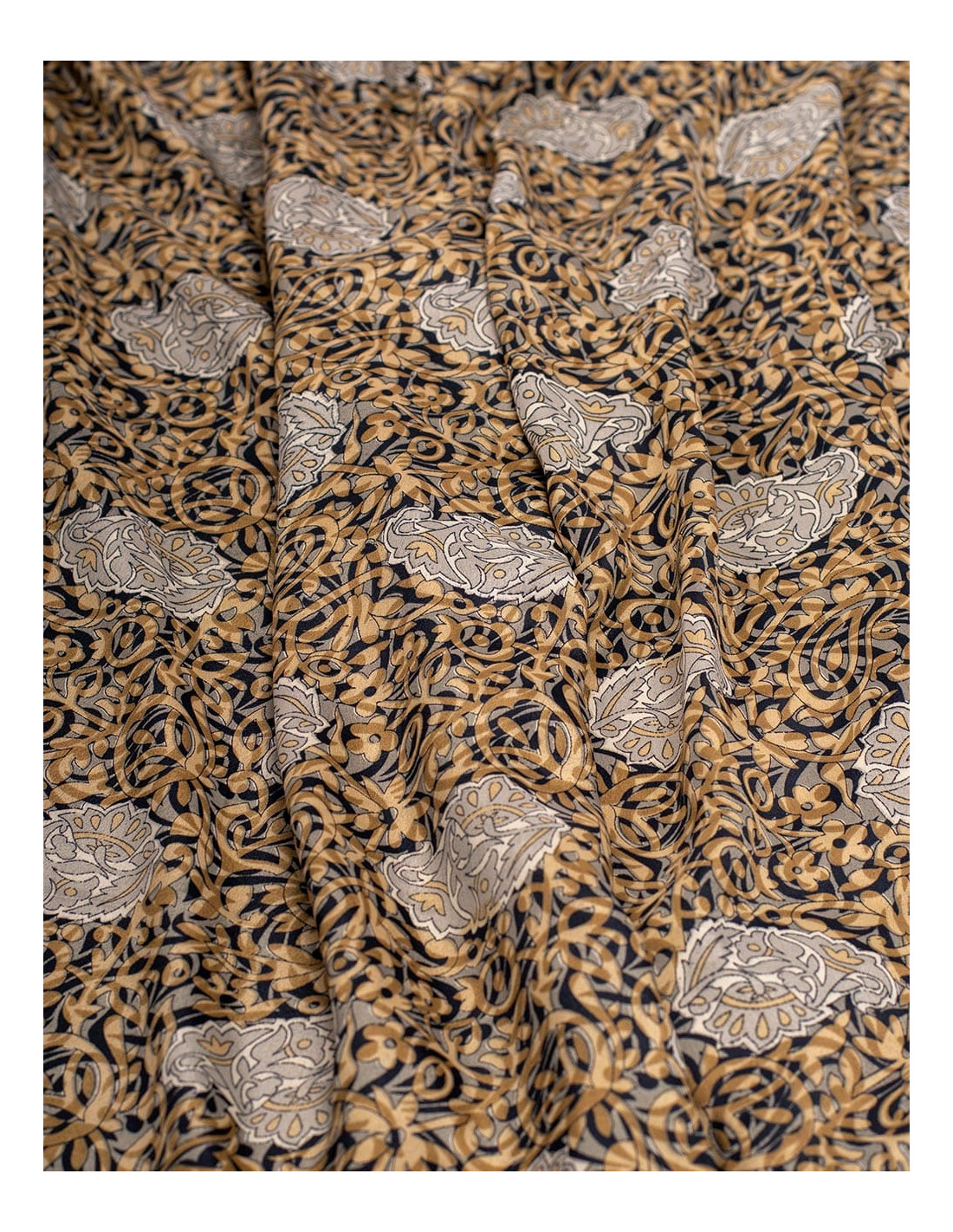 Rectangular chiffon scarf printed with drawings of leaves and flowers available in three different shades.
