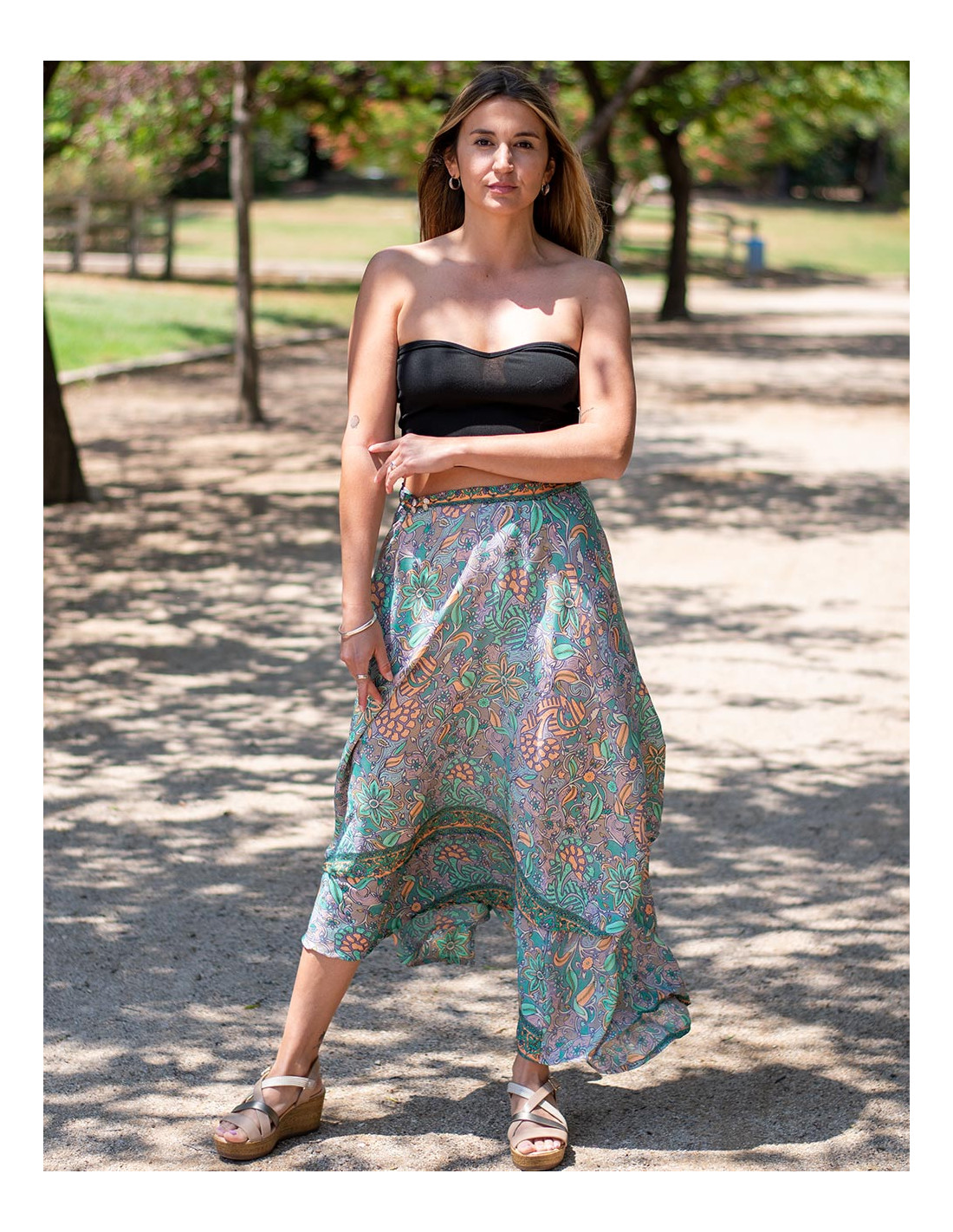 Printed silk dress with deep V-neck that is repeated on the back It belongs to the collection with the project: