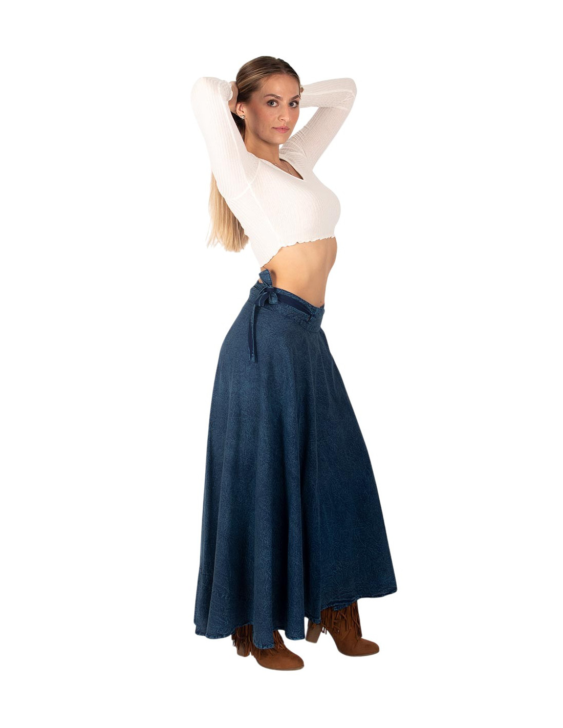 Kimago 's long wrap skirt is a garment that fuses boho style and artisanal authenticity.