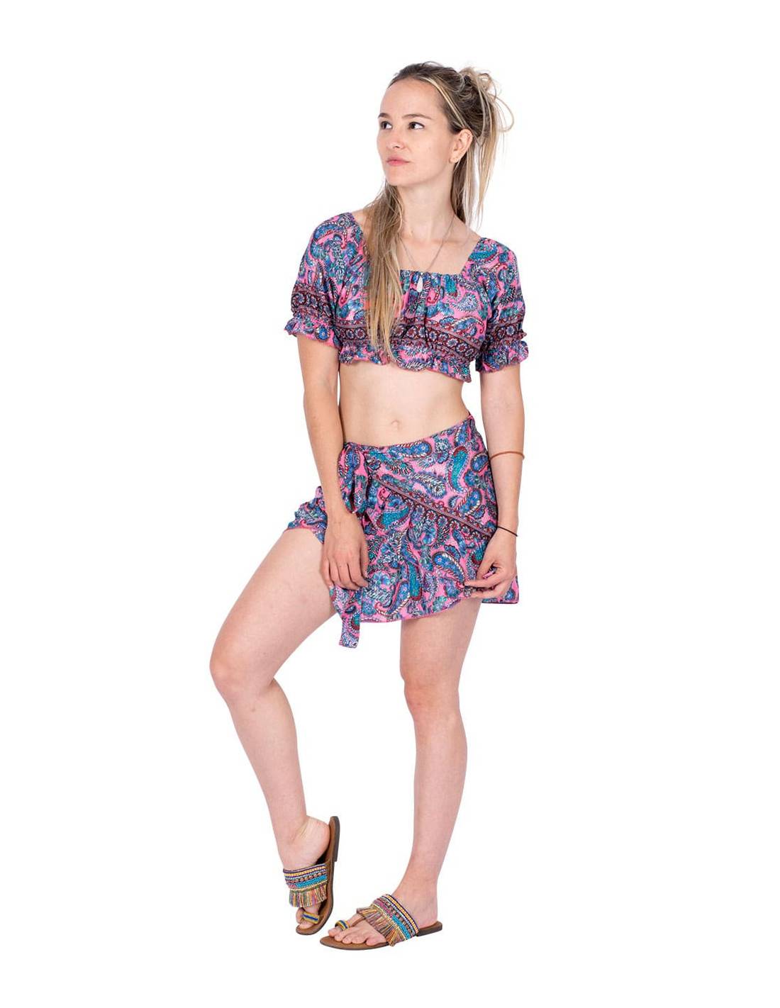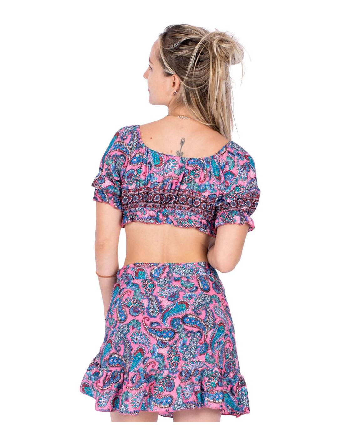 Short silk skirt with elastic at the back of the waist. It is stamped with the base in light brown It belongs to the collection with the project: