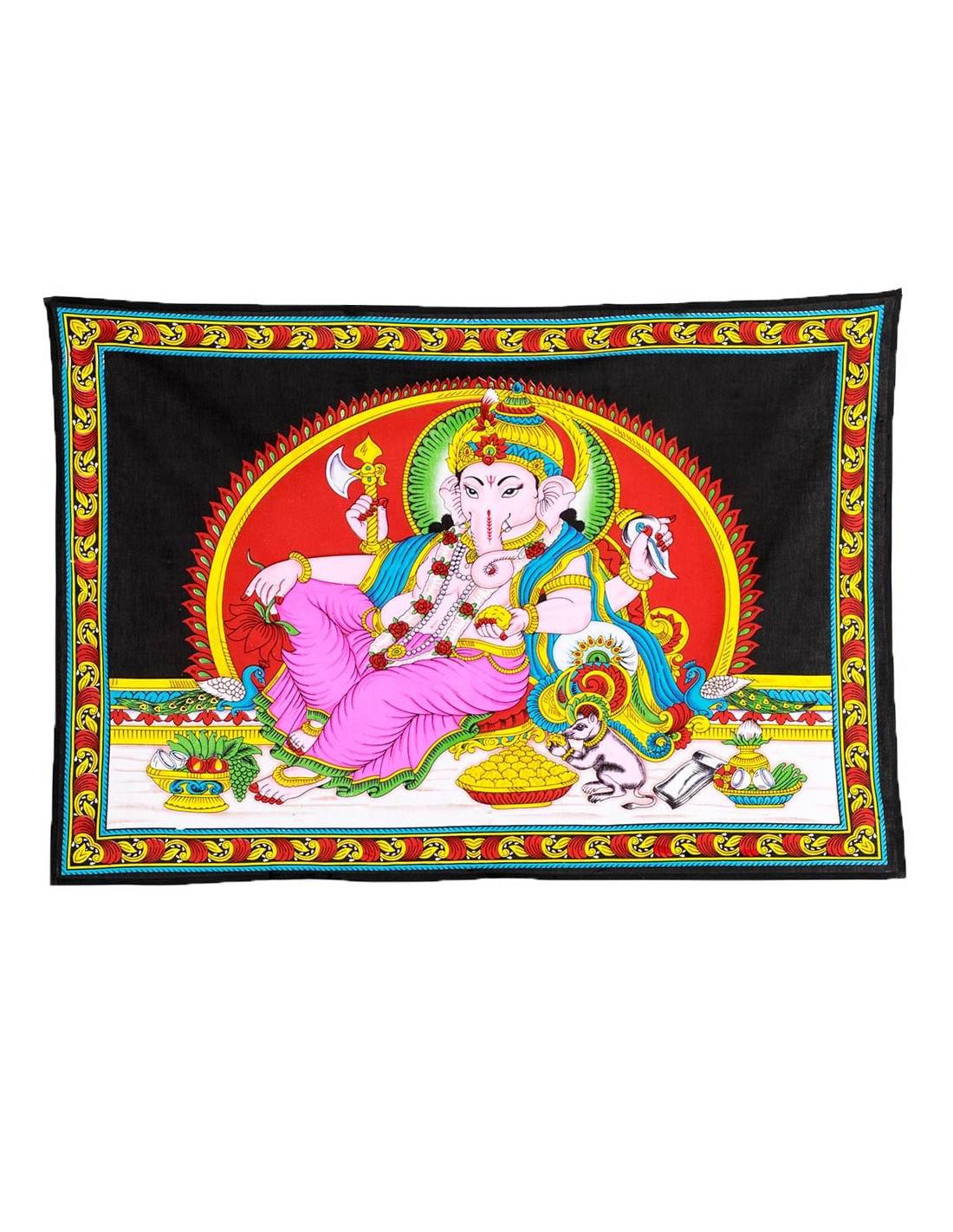 Hindu God Ganesha tapestry in a horizontal position in strong colors that highlight the image