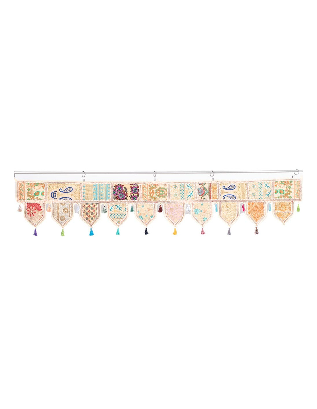 Toran for a door of straight shape and large size, as it measures almost 2 meters. It is handcrafted in India.