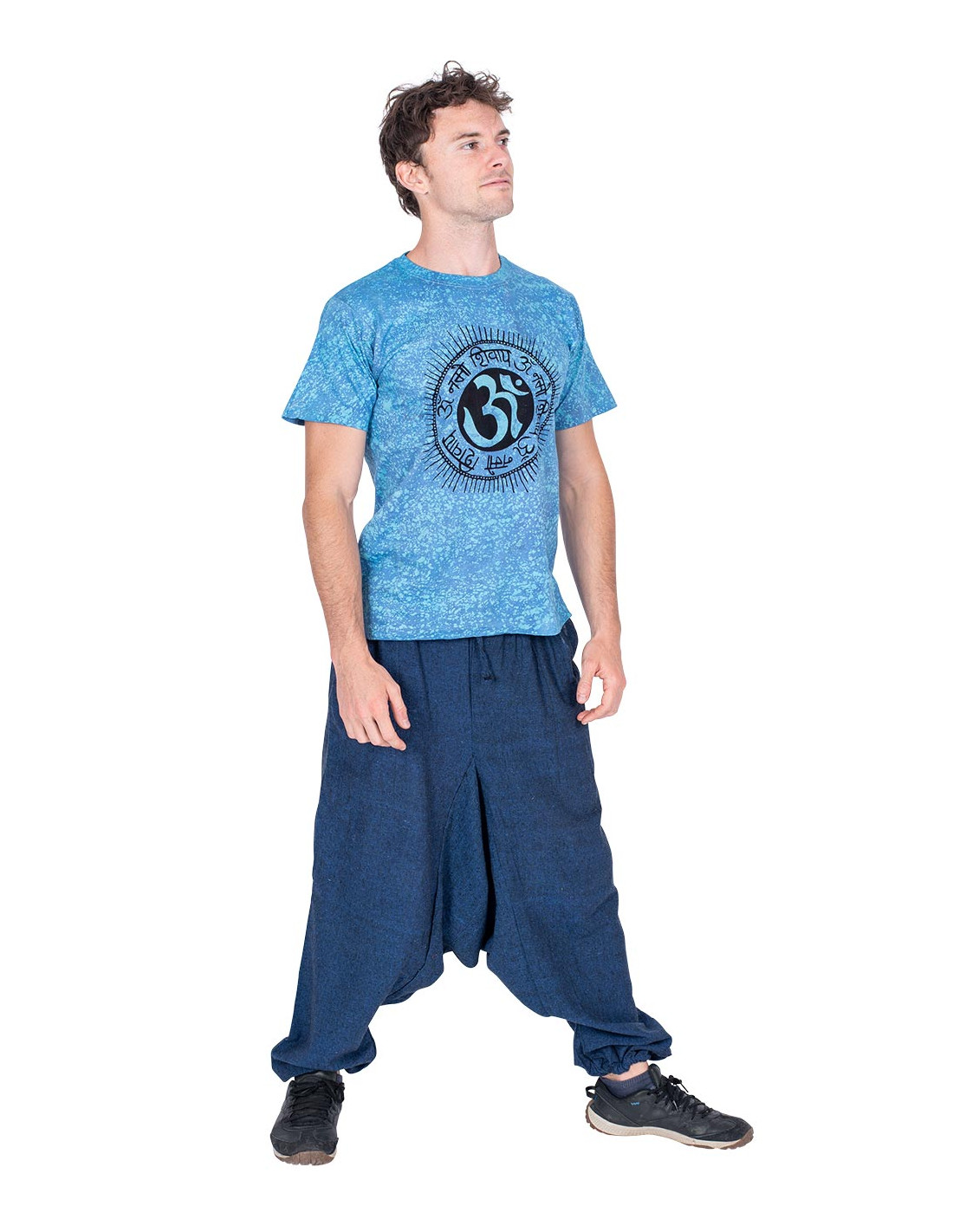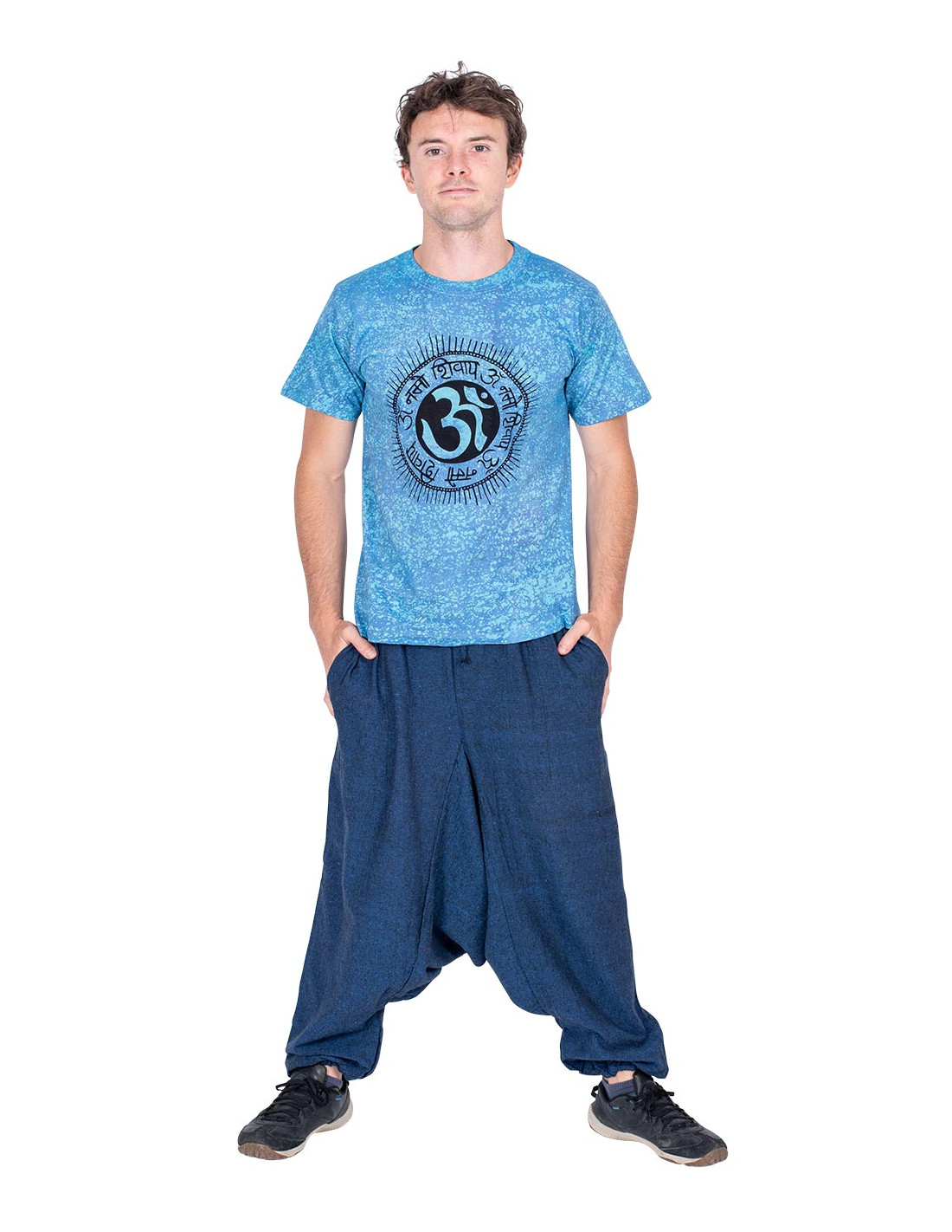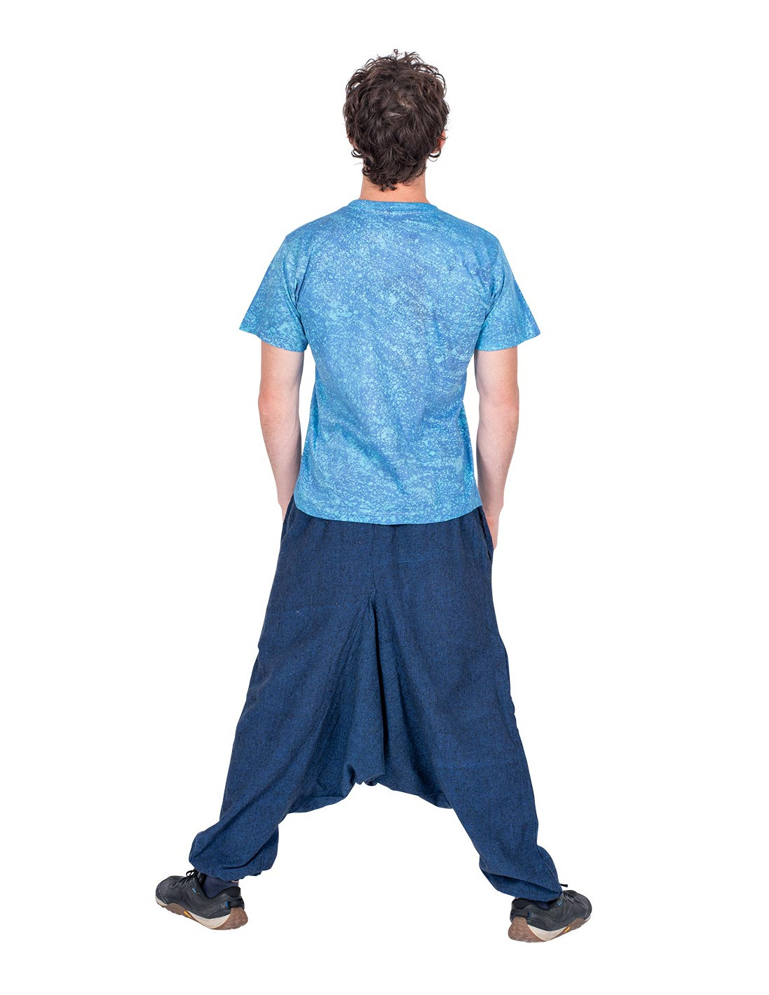Set of top and short skirt made of silk, the background color is blue with drawings in pink and light blue