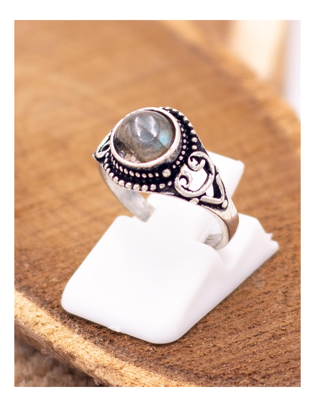 Anillo étnico plateado con piedra natural